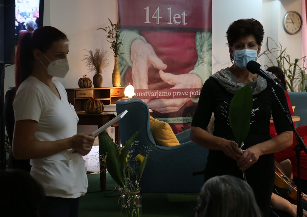 Na prireditvi ob 14. obletnici je vodja, mag. Marjana Kamnik v nagovoru poudarila nekatere od dobrih strani življenja v domu in seveda zaželela dobro počutje v dejavnem življenju. Obletnice so tudi priložnost za besedo, dve o nesebičnih prizadevanjih zaposlenih za čim boljše počutje stanovalk in stanovalcev in za podelitev priznanj za njihov neusahljiv trud.