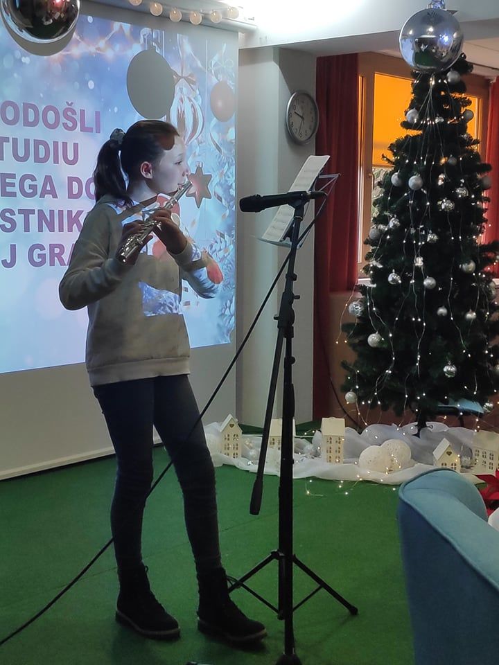 Danes smo v oddaji, ki jo vodi naša stanovalka, gospa Maja Gregorič, v prvem delu potelovadili z naši fizioterapevtko Vesno. Na flavto nam je zaigrala njena hčerka, Nika Praznik, kasneje pa se nam je pridružil naš stanovalec, gospod Peter Jamer , ki je predstavil izdelavo lesenih križcev, poleg tega pa smo lahko slišali tudi Hotuljsko polko, katere avtor je on sam.
