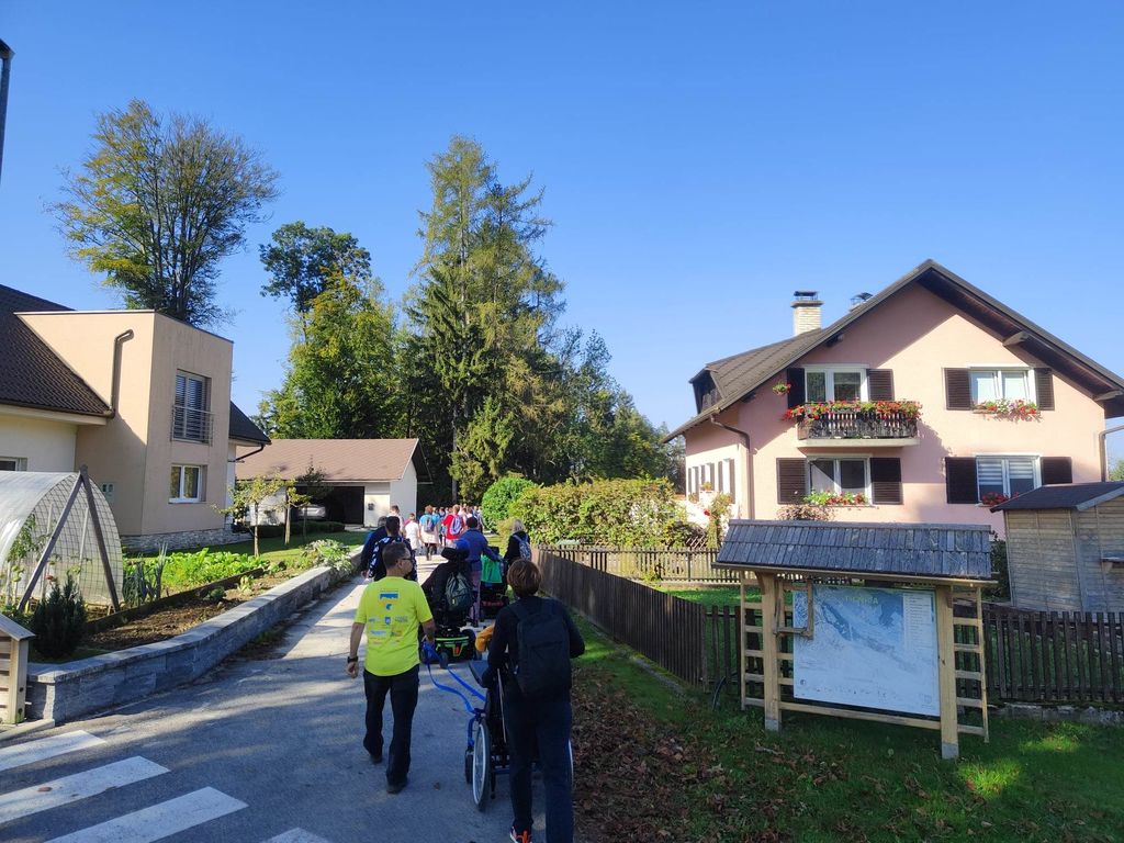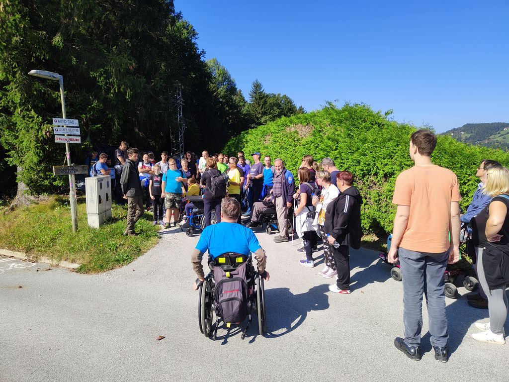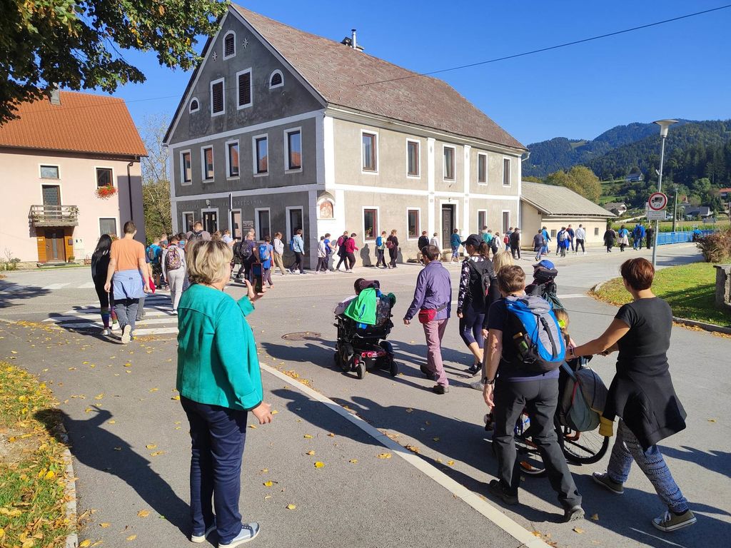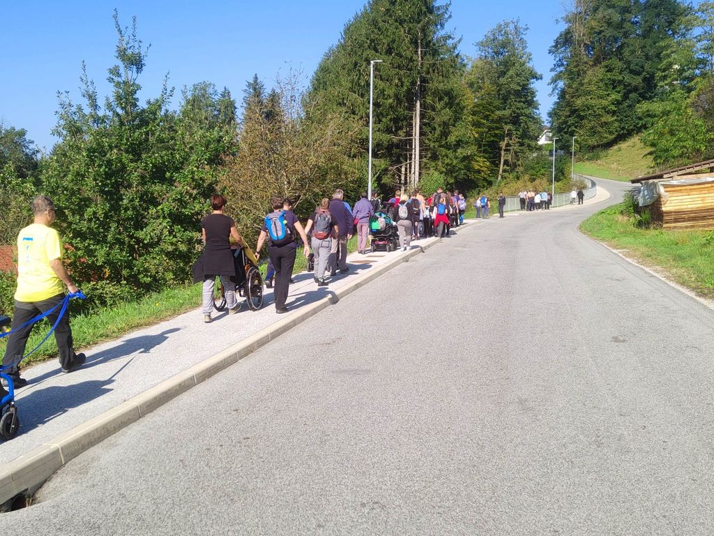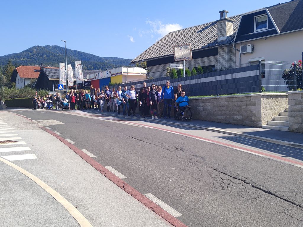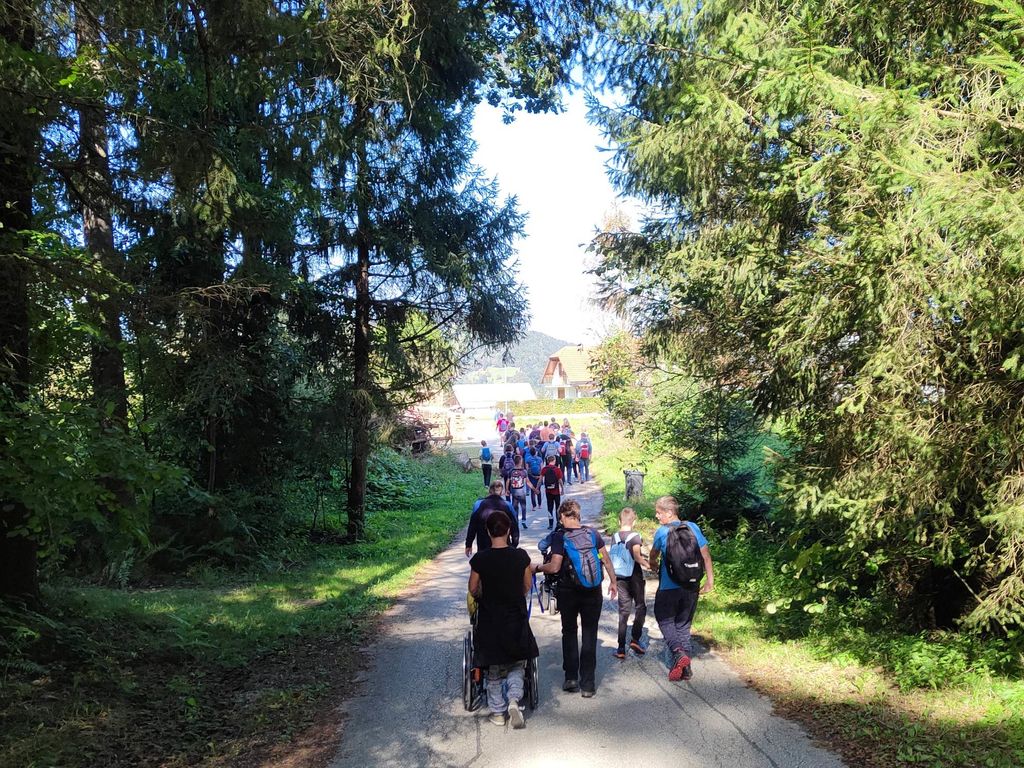 Zborno mesto za prevoz smo pohodniki 5. Inkluzijskega pohoda Festivala drugačnosti imeli v torek, 26. 9. 2022 na parkirišču Namanove. Prepeljali smo se v Šmartno, kjer smo se zbrali na parkirišču za cerkvijo in osnovno šolo. Po pozdravu ga. podžupanje Martine Šisernik, je organizator Stojan Rozman pohodnikom povedal kod se gre, pokazal pravilno namestitev trakov za vlečenje / zaviranje, porazdelil pomoči in kaj moramo na pohodu upoštevati in na kaj paziti. Pohodniki so se strnili v kolono 79 pohodnikov iz vrst učencev in učiteljev 3 OŠ, varovancev CUDV Črna - VDC in hiša Slovenj Gradec, SONČEK – center Ivančica, OZARE d.o.o. in dnevni center, Zavod Risa, Društva paraplegikov Koroške in prostovoljcev iz vrst Planinskega društva Slovenj Gradec. Pot nas je vodila v klanec na Legen. Spremljevalno vozilo je bilo koristno, ne samo za prevoz vode in slastnih sendvič štručk, ampak tudi za utrujene. Pred cerkvijo sv. Jurij se je povedalo nekaj o cerkvi, njeni posebnosti – steklenem podu, o gradu, ki tu zadaj nekoč stal, in gomilah tod na Legnu. Nato smo se na drugi strani ceste ustavili ob tabli in začetku naše poti po gozdni učni poti Tičnica. Pohodniki so šli ob robu gozda do Cross county kluba, tisti na invalidskih vozičkov pa so tja prišli po pločniku in cesti. Tu smo pomalicali, se spočili in gledali te prekrasne konje. Naprej na poti ob gozdu smo se srečali z gozdarjem g. Žigom Repotočnikom iz Zavoda za gozdove Slovenj Gradec. Povedal je kaj pomen gozdov, njihovo sestavo, uporabo, skrb zanje … med potjo proti cilju je predstavljal posamezne vrste dreves, posebnosti gozdov teh krajev, oblike zaščite in delo v gozdu. Na jasi nad mestom smo imeli lep pogled na Uršljo goro, Peco in Rahtel. Spustili smo se do konca Tičnice – v cvetličnem parku na klancu pod bivšim Bellveu ter uživali v prijetnem jesenskem vremenu, prekrasni pokrajini in pisani družbi. Tu smo se razšli – spremljevalni kombi je še odpeljal voznike do njihovih avtomobilov na zborno mesto – z vprašanjem: »Kam pa gremo drugo leto?« Odgovor navihanca iz 3 OŠ: »Za nosom«.