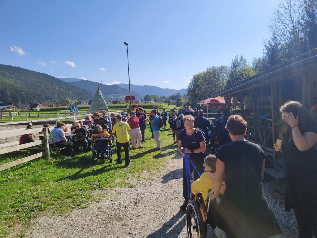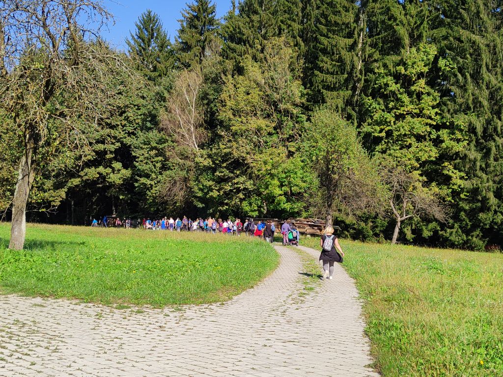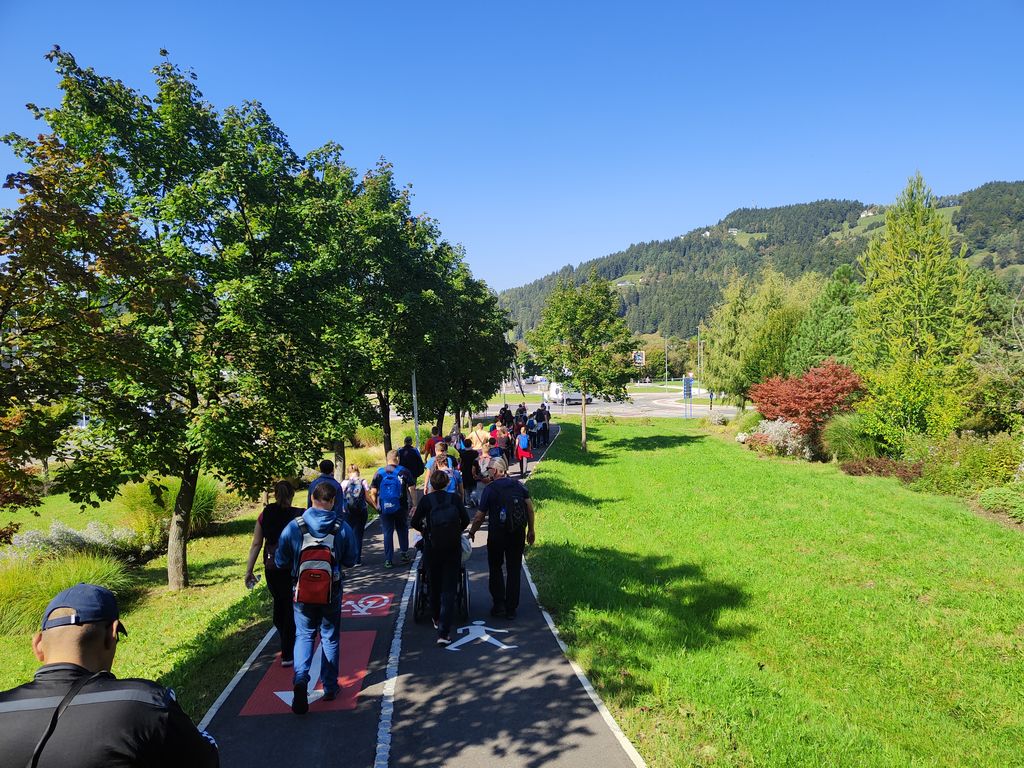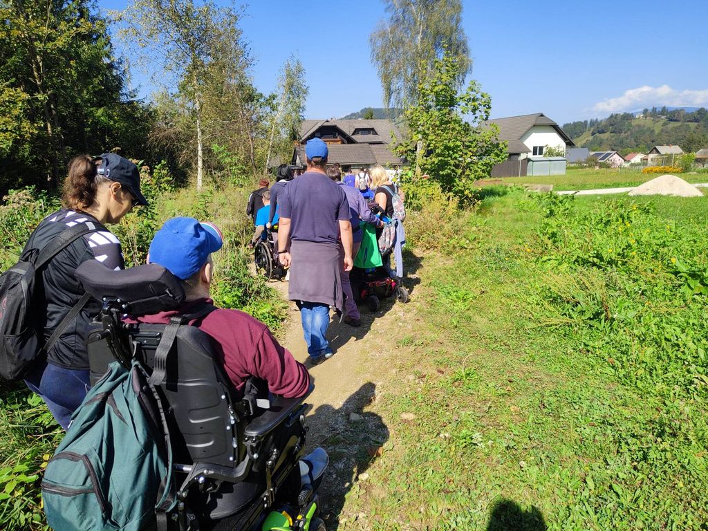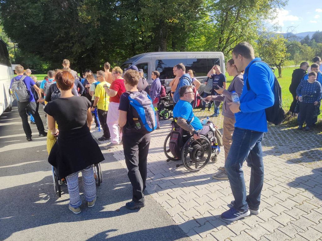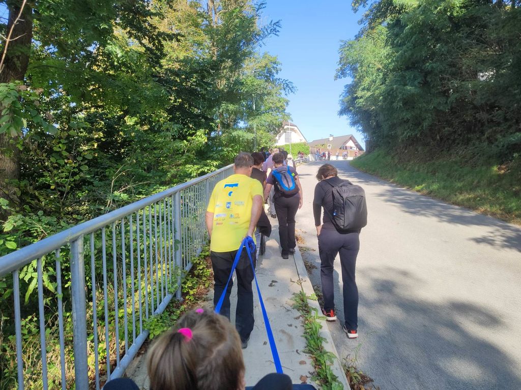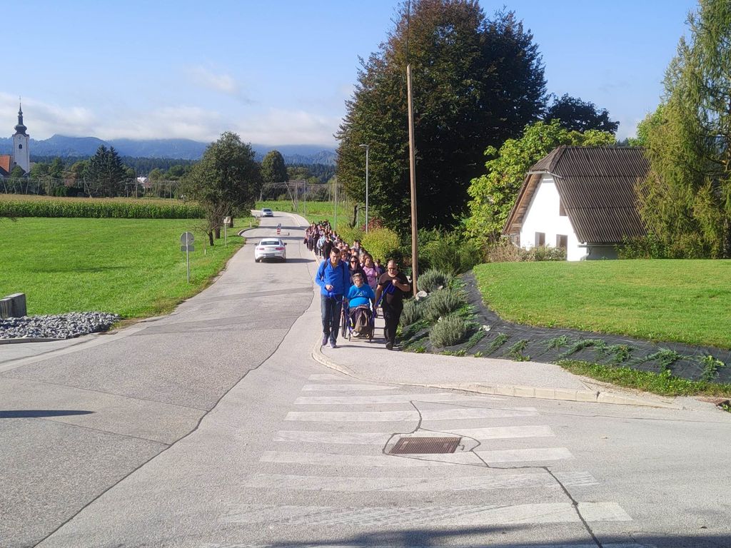 Zborno mesto za prevoz smo pohodniki 5. Inkluzijskega pohoda Festivala drugačnosti imeli v torek, 26. 9. 2022 na parkirišču Namanove. Prepeljali smo se v Šmartno, kjer smo se zbrali na parkirišču za cerkvijo in osnovno šolo. Po pozdravu ga. podžupanje Martine Šisernik, je organizator Stojan Rozman pohodnikom povedal kod se gre, pokazal pravilno namestitev trakov za vlečenje / zaviranje, porazdelil pomoči in kaj moramo na pohodu upoštevati in na kaj paziti. Pohodniki so se strnili v kolono 79 pohodnikov iz vrst učencev in učiteljev 3 OŠ, varovancev CUDV Črna - VDC in hiša Slovenj Gradec, SONČEK – center Ivančica, OZARE d.o.o. in dnevni center, Zavod Risa, Društva paraplegikov Koroške in prostovoljcev iz vrst Planinskega društva Slovenj Gradec. Pot nas je vodila v klanec na Legen. Spremljevalno vozilo je bilo koristno, ne samo za prevoz vode in slastnih sendvič štručk, ampak tudi za utrujene. Pred cerkvijo sv. Jurij se je povedalo nekaj o cerkvi, njeni posebnosti – steklenem podu, o gradu, ki tu zadaj nekoč stal, in gomilah tod na Legnu. Nato smo se na drugi strani ceste ustavili ob tabli in začetku naše poti po gozdni učni poti Tičnica. Pohodniki so šli ob robu gozda do Cross county kluba, tisti na invalidskih vozičkov pa so tja prišli po pločniku in cesti. Tu smo pomalicali, se spočili in gledali te prekrasne konje. Naprej na poti ob gozdu smo se srečali z gozdarjem g. Žigom Repotočnikom iz Zavoda za gozdove Slovenj Gradec. Povedal je kaj pomen gozdov, njihovo sestavo, uporabo, skrb zanje … med potjo proti cilju je predstavljal posamezne vrste dreves, posebnosti gozdov teh krajev, oblike zaščite in delo v gozdu. Na jasi nad mestom smo imeli lep pogled na Uršljo goro, Peco in Rahtel. Spustili smo se do konca Tičnice – v cvetličnem parku na klancu pod bivšim Bellveu ter uživali v prijetnem jesenskem vremenu, prekrasni pokrajini in pisani družbi. Tu smo se razšli – spremljevalni kombi je še odpeljal voznike do njihovih avtomobilov na zborno mesto – z vprašanjem: »Kam pa gremo drugo leto?« Odgovor navihanca iz 3 OŠ: »Za nosom«.