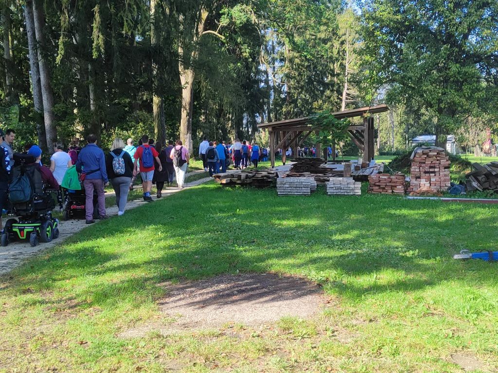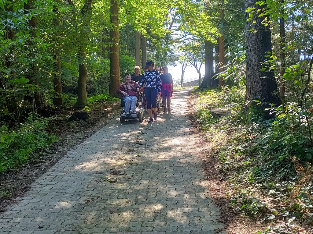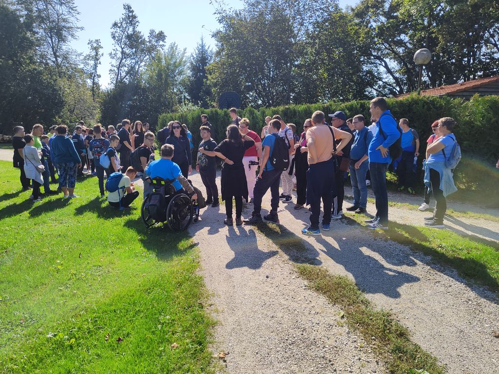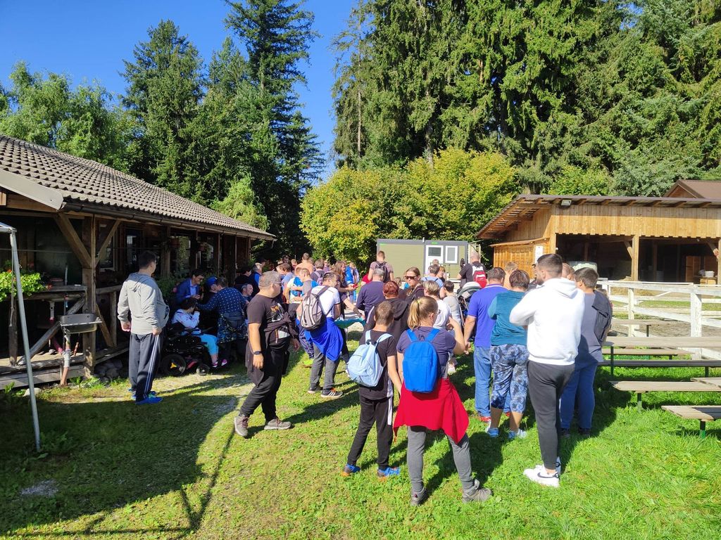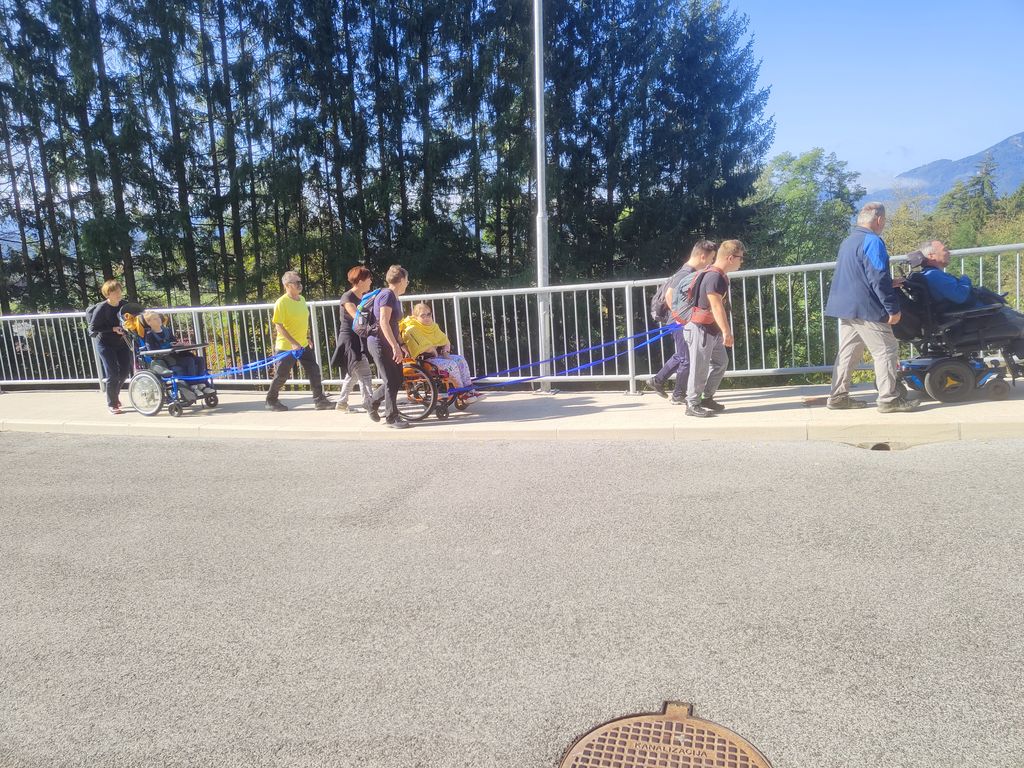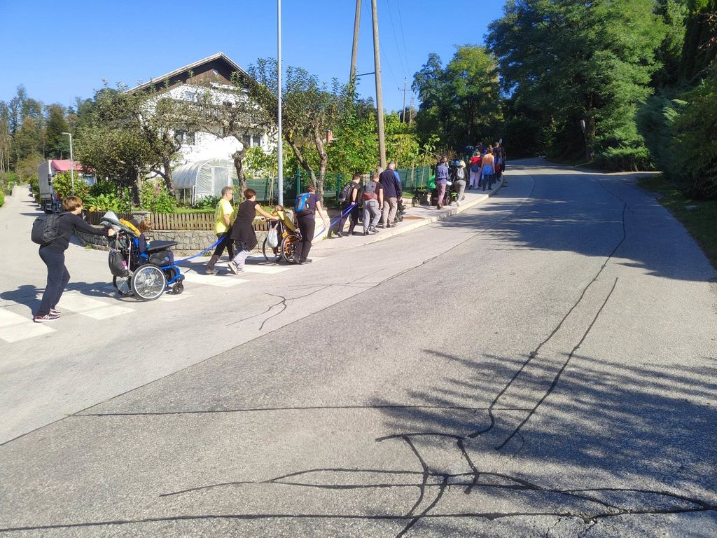 Zborno mesto za prevoz smo pohodniki 5. Inkluzijskega pohoda Festivala drugačnosti imeli v torek, 26. 9. 2022 na parkirišču Namanove. Prepeljali smo se v Šmartno, kjer smo se zbrali na parkirišču za cerkvijo in osnovno šolo. Po pozdravu ga. podžupanje Martine Šisernik, je organizator Stojan Rozman pohodnikom povedal kod se gre, pokazal pravilno namestitev trakov za vlečenje / zaviranje, porazdelil pomoči in kaj moramo na pohodu upoštevati in na kaj paziti. Pohodniki so se strnili v kolono 79 pohodnikov iz vrst učencev in učiteljev 3 OŠ, varovancev CUDV Črna - VDC in hiša Slovenj Gradec, SONČEK – center Ivančica, OZARE d.o.o. in dnevni center, Zavod Risa, Društva paraplegikov Koroške in prostovoljcev iz vrst Planinskega društva Slovenj Gradec. Pot nas je vodila v klanec na Legen. Spremljevalno vozilo je bilo koristno, ne samo za prevoz vode in slastnih sendvič štručk, ampak tudi za utrujene. Pred cerkvijo sv. Jurij se je povedalo nekaj o cerkvi, njeni posebnosti – steklenem podu, o gradu, ki tu zadaj nekoč stal, in gomilah tod na Legnu. Nato smo se na drugi strani ceste ustavili ob tabli in začetku naše poti po gozdni učni poti Tičnica. Pohodniki so šli ob robu gozda do Cross county kluba, tisti na invalidskih vozičkov pa so tja prišli po pločniku in cesti. Tu smo pomalicali, se spočili in gledali te prekrasne konje. Naprej na poti ob gozdu smo se srečali z gozdarjem g. Žigom Repotočnikom iz Zavoda za gozdove Slovenj Gradec. Povedal je kaj pomen gozdov, njihovo sestavo, uporabo, skrb zanje … med potjo proti cilju je predstavljal posamezne vrste dreves, posebnosti gozdov teh krajev, oblike zaščite in delo v gozdu. Na jasi nad mestom smo imeli lep pogled na Uršljo goro, Peco in Rahtel. Spustili smo se do konca Tičnice – v cvetličnem parku na klancu pod bivšim Bellveu ter uživali v prijetnem jesenskem vremenu, prekrasni pokrajini in pisani družbi. Tu smo se razšli – spremljevalni kombi je še odpeljal voznike do njihovih avtomobilov na zborno mesto – z vprašanjem: »Kam pa gremo drugo leto?« Odgovor navihanca iz 3 OŠ: »Za nosom«.