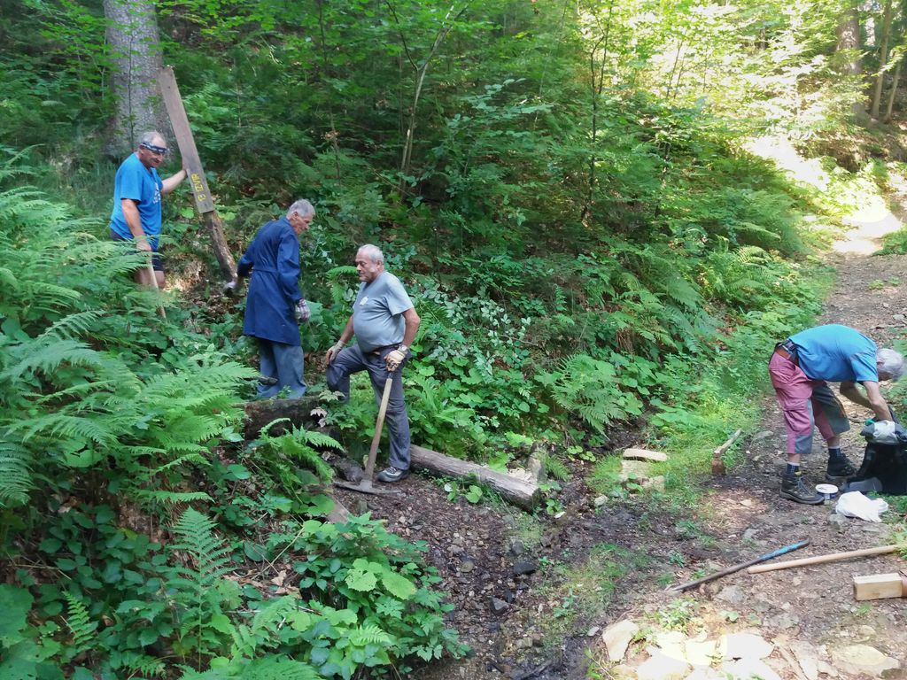 Pri urejanja poti so sodelovali in krepko delali dolgoletni markacisti PD Slovenj Gradec: Marijan Popič, Marijan Krevh, Stanko Otič ,njihov načelnik Slavko Pogorelčnik in naš planinski prijatelj Lipi, ki je vedno takoj pripravljen za vsako akcijo. Opravili so 30 skupinskih delovnih ur, očistili 20 kanalov za odvod vode. Postavili so 7 nadomestnih drogov in namestili 12 novih smernic poti. Pot je bila mestoma že preraščena , zato so skrbno obrezali veje in nižje rastlinje.