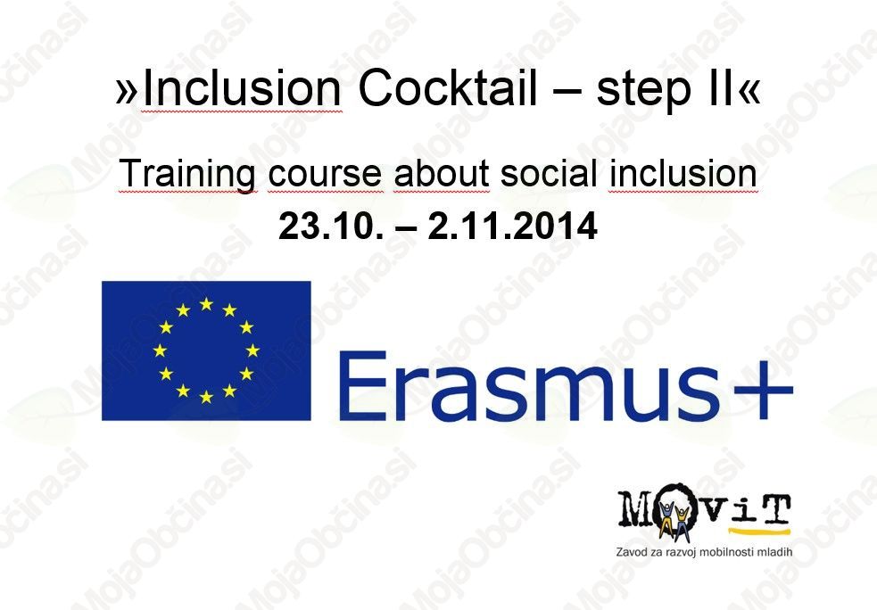 V Mladinskem kulturnem centru (MKC) Slovenj Gradec bo med 23. 10. in 2. 11. 2014, potekalo mednarodno usposabljanje mladinskih delavcev z naslovom: »Inclusion Cocktail, step II«. Gre za nadgradnjo projekta socialne inkluzije, ki se je v MKC-ju odvijal lani. Projekt, ki se ga letos udeležuje 24 mladih in 6-ih držav (Makedonija, Hrvaška, Češka, Bolgarija, Latvija in Slovenija), poteka na temo medgeneracijskega sodelovanja. Mladi se bodo, v sodelovanju z Domom starostnikov iz Črneč in enote Slovenj Gradec, učili veščin dela socialnega vključevanja starejših. Usposabljanje vodita »trainerja« iz Latvije ob strokovni pomoči zaposlenih v MKC Slovenj Gradec.