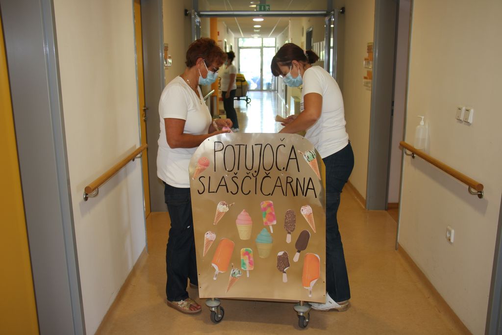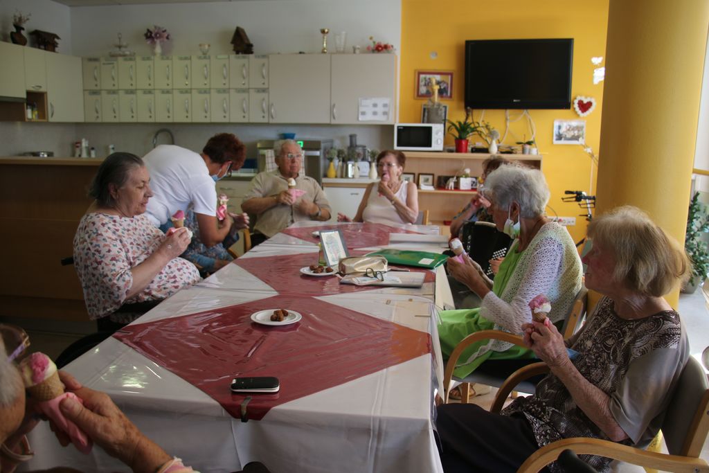 V tem tednu je bilo pri nas zelo pestro. Poleg rednih aktivnosti, ki potekajo v domu, so nas obiskale gospe iz Koroškega medgeneracijskega centra. Stanovalci so se lahko ohladili s kepico sladoleda iz potujoče slaščičarne. Prav tako je redno potekala telovadba preko interne televizije. Za nami pa so tudi že 4. poletne igre.