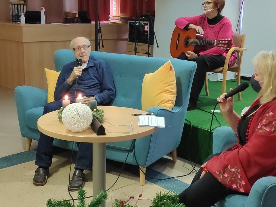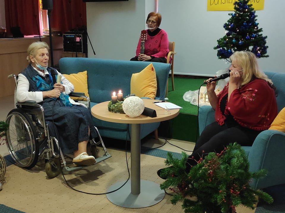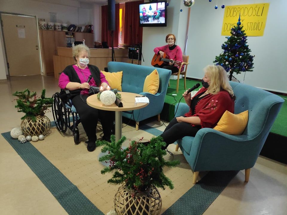 Sicer življenje v domu poteka dokaj normalno. Ker pa ukrepi  za preprečevanje širjenja okužb prepovedujejo druženja, smo danes začeli s prazničnim programom interne televizije. Stanovalci in zaposleni so z navdušenjem sodelovali pri pripravi programa. S pomočjo novinarke Natalije Križaj smo danes izvedli prvo oddajo v živo. Odziv je bil odličen.