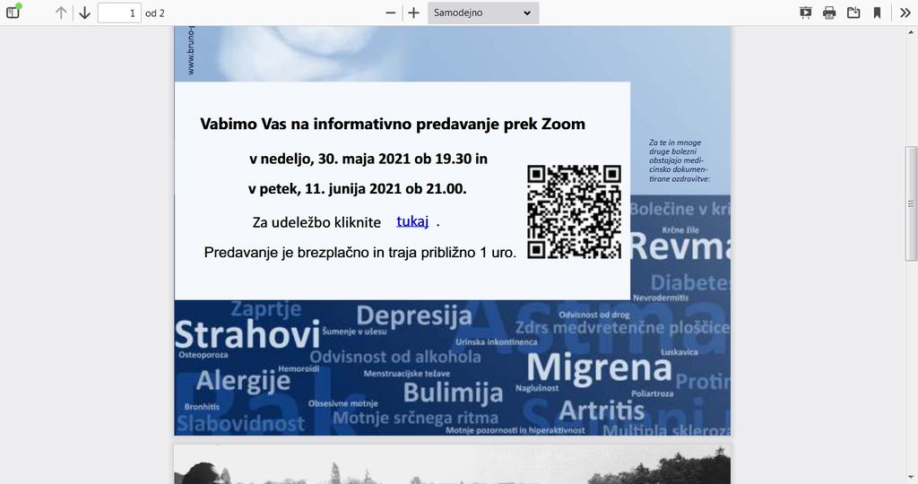 predavanje prek aplikacije Zoom, na temo »Pomoči in ozdravitve s pomočjo učenja