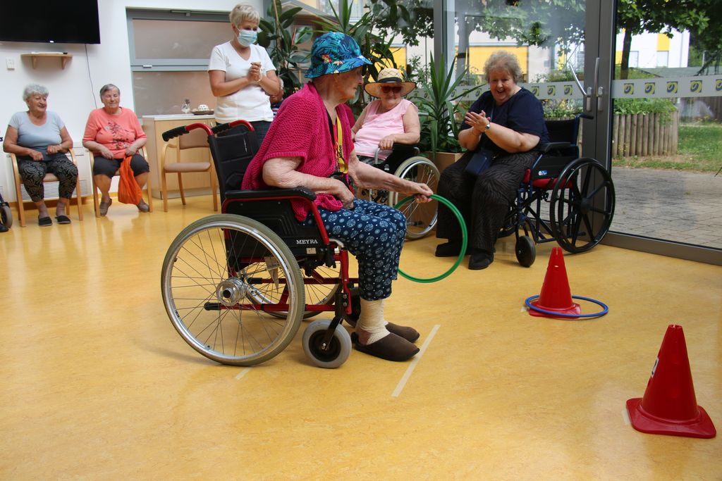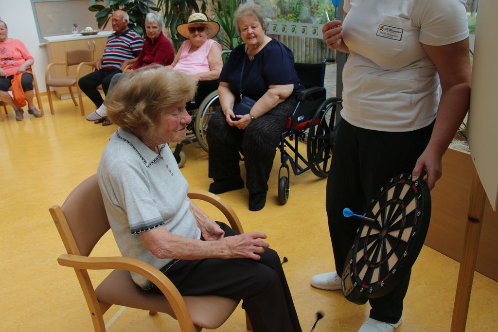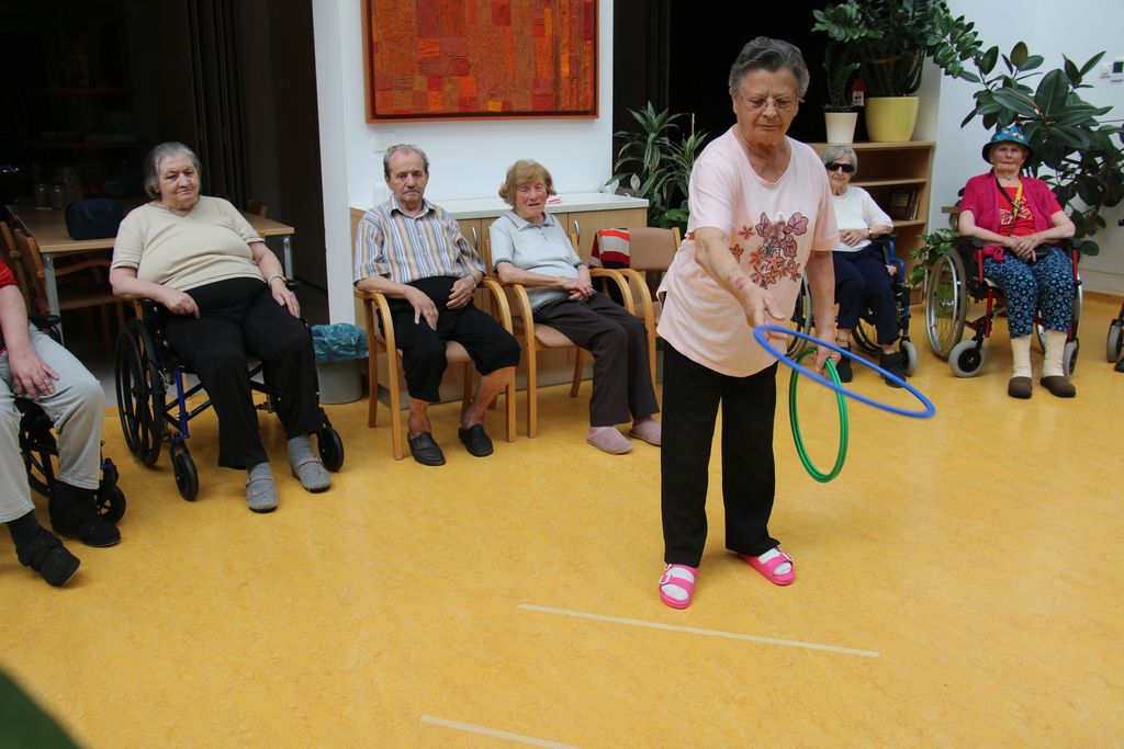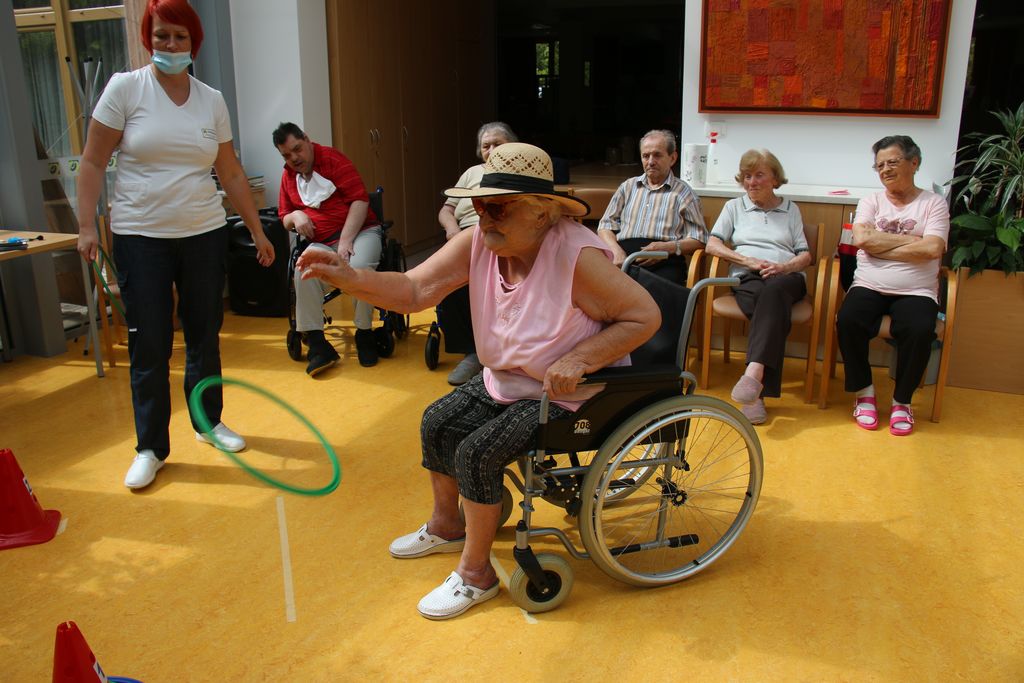 Poleg torkove potujoče slaščičarne, bralne ure in pevskih vaj, smo ta teden izvedli prve prave poletne športne igre. Stanovalci so se pomerili v pikadu in metanju obročev. Pri metanju obročev se rezultati niso posebej razlikovali, pri pikadu pa je nekoliko izstopala gospa Anica.