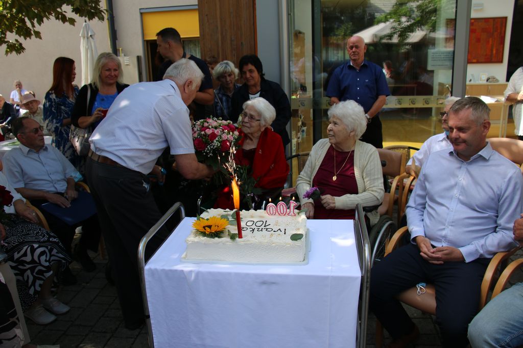 100 let dogodkov, zgodb, … vse to oplemeniteno z nasmehom, celo več, s smehom in življenjsko vedrino. Z ga. Ivano Vranjek so slavili številni sorodniki, stanovalke in stanovalci doma, toplo pa so ji čestitali in voščili vse dobro tudi slovenjegraški župan, predsednik društva upokojencev Šmartno in predstavniki krajevne organizacije združenja borcev Šmartno.