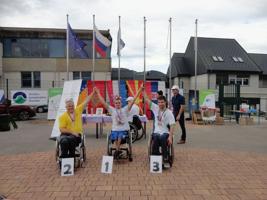 Za nami je že 48. tekmovanje v spomin na pionirja slovenskega invalidskega športa prof. Bojana Hrovatina, ki z mednarodno udeležbo dobiva vse večje razsežnosti. Slovenskim atletom paraplegikom, ki so se pomerili na 26. državnem prvenstvu, so se 9. septembra 2017 na Atletskem stadionu v Slovenj Gradcu pridružili tudi atleti iz Hrvaške, Bosne in Hercegovine Srbije, Črne Gore in Makedonije. Največje atletsko tekmovanje  paraplegikov je v organizaciji Zveze paraplegikov in Zveze za šport invalidov Slovenije ter pokroviteljstvom Mestne občine Slovenj Gradec odlično pripravilo Društvo paraplegikov Koroške. Nastopilo je 74 atletinj in atletov iz pokrajinski društev Zveze in omenjenih držav. Za pravilen in nemoten potek tekmovanja je pod vodstvom Majde Areh Novak skrbelo 18 sodnikov iz Združenja atletskih sodnikov Slovenije. Po pozdravnih nagovorih  predsednika društva gostiteljev DP Koroške Damjana Hovnika, predstavnika ZŠIS-POK Primoža Jeraliča in predsednika Zveze paraplegikov Slovenije Daneta Kastelica, je uvod v atletske boje naznanila Zdravljica. Atleti so se najprej pomerili v trobojih (met kopja, diska/kija in suvanje krogle). Športniki paraplegiki so za doseganje boljših rezultatov uporabljali posebne tekmovalne stole, ki so nekoliko višji od vozičkov. Tudi letošnje tekmovanje je potekalo na šestih tekmovališčih hkrati, tekmovalci pa s presedanjem niso izgubljali časa. Menjavali so le orodja. Pri metih so imeli na voljo en poizkusni met in šest metov v konkurenci, sodniki pa so na tekmovalni list vpisali najboljši izmerjen rezultat. Glede na višino poškodbe atleti v trobojih tekmujejo v skupinah F51 - F57, v vožnjah pa v skupinah T51 - T54. Skupine kjer je nastopalo manjše število tekmovalcev so združili v eno skupino. Po trobojih v metih so atleti nastopili v hitrostnih vožnjah na 100, 200 in 400 metrov s specialnimi vozički, na memorialni vožnji na 100 metrov s standardnimi vozički posvečeni prof. Bojanu Hrovatinu in vožnji na 800 metrov, ki jo posvečamo našemu velikemu prijatelju in športnemu novinarju Henriku Übeleisu. Ekipe držav nekdanje Jugoslavije so pomerile tudi na meddržavnem tekmovanju v četveroboju. Za uvrstitve so šteli najboljši rezultati štirih tekmovalcev iz štirih disciplin: met kopja in diska, suvanje krogle in vožnja na 100 metrov. Največ točk je osvojila ekipa Slovenije (7.854,47), pokal za drugo mesto je osvojila Črna Gora (6.687,414), za tretje pa Srbija (5.988,94). Četrta je bila Makedonija (5.571,57), peta BiH (4.324,52) s tremi tekmovalci, šesta pa Hrvaška (1.664,54) kjer je nastopila samo ena atletinja. Za vnos podatkov in računalniški izračun sta skrbela Marina Hudej in vodja tekmovanja Janez Hudej. Korošci so se zopet izkazali: troboj meti, 1.mesto, skupina F51 – Erjavec Branko; 3.mesto, skupina F52,53 – Grilc Zdravko; 1.mesto, skupina F55,56 – Rek Damjan; troboj vožnje, skupine F51-F54 – 2. mesto Žibert Boris in 3.mesto Mitja Breg;  ženske 100m vožnje, 3.mesto – Gornik Ivana; moški, 800m, 1.mesto – Žibert Boris in 3.mesto Mitja BregOb razglasitvi rezultatov se je športnikom za nastope in športno tekmovanje zahvalil vodja športa pri Zvezi paraplegikov Slovenije Gregor Gračner, nagovoril pa jih je tudi župan Mestne občine Slovenj Gradec Andrej Čas. Dobrodošlico je zaželel vsem tekmovalcem, še posebej pa atletom iz držav nekdanje Jugoslavije. Čestital jim je za dosežene rezultate, nato pa s predsednikom Zveze Danetom Kastelicem podelil pokale in medalje. Goste iz drugih držav smo namestili v Hostlu Slovenj Gradec ter pogostili v gostilni Murko in v društvenih prostorih. Bilo je to res enkratno druženje.