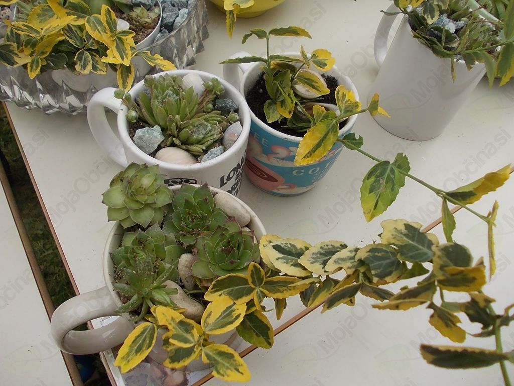 O "ponovni uporabi"je veliko slišati. Članice Ekološkega društva in članice Sožitja so ponovno uporabile že odslužene skodelice in skledice.
