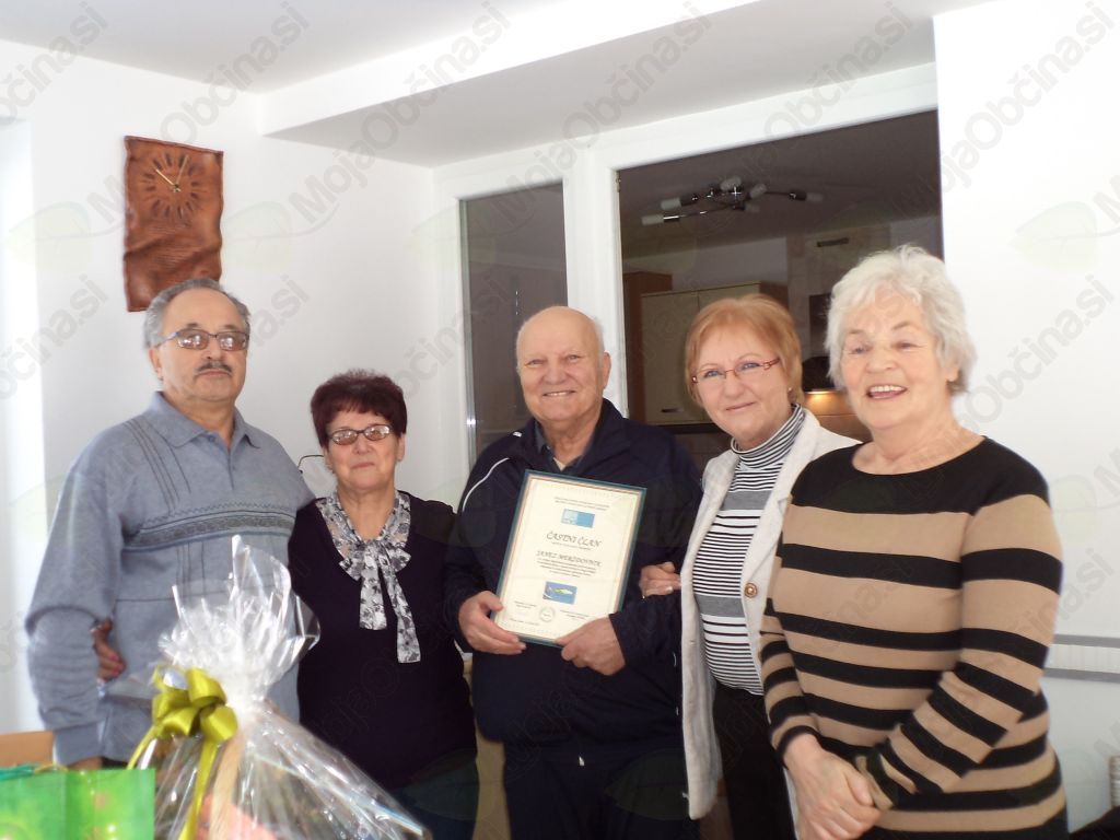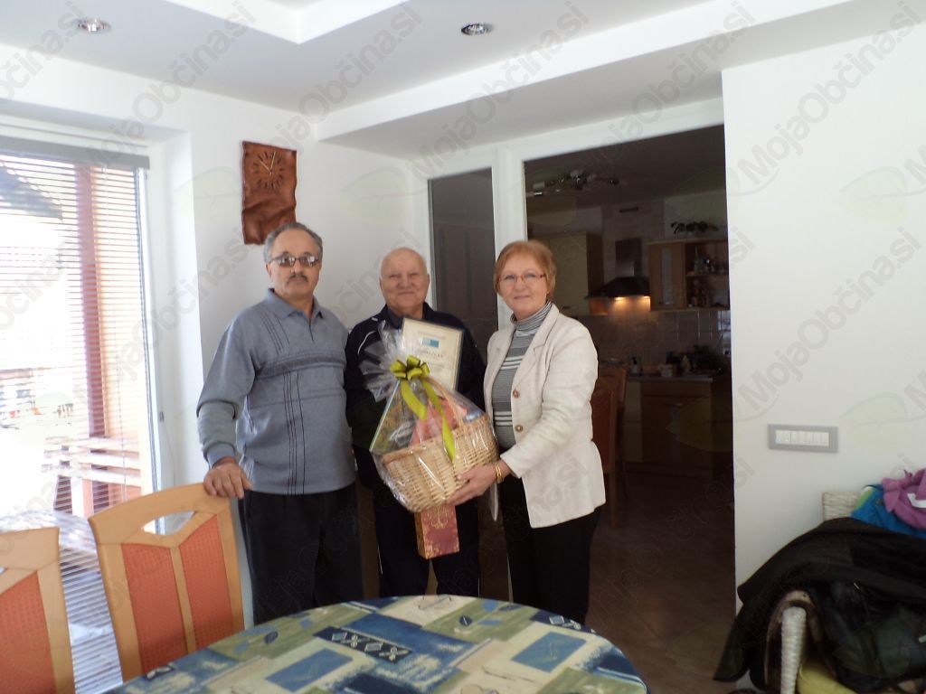 Pri Janezu Merzdovniku smo se zglasili po predhodnem dogovoru. Obiskali smo ga z namenom, da mu izročimo listino ter se mu zahvalimo za njegovo dolgoletno in požrtvovalno delo tako v aktivu kot v društvu. En mandat je bil namreč Janez Merzdovnik tudi predsednik društva in en mandat član Nadzornega odbora. Ob prihodu se nas je zelo razveseli, kar nam kaže njegov nasmeh in iskrice v očeh. Najprej mu je predsednik AI Šmartno Rudi Horvat skupaj z gospo Lizo Krpač izročil Listino »Častni član Aktiva invalidov Šmartno«, v imenu DI Slovenj Gradec pa se mu je zahvalila predsednica Stanislava Tamše.