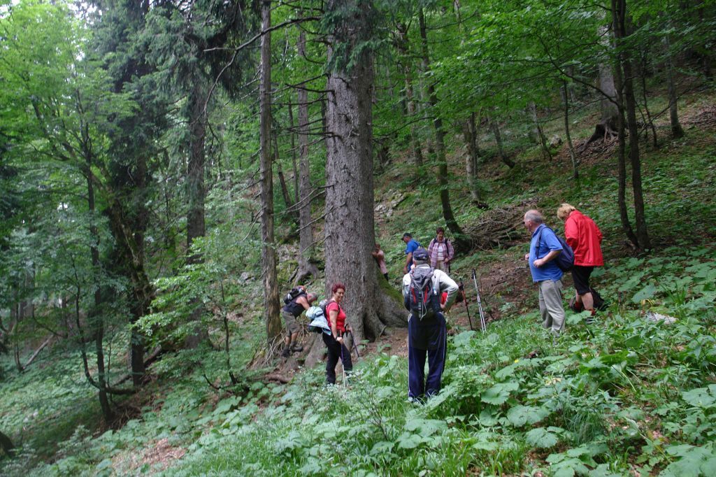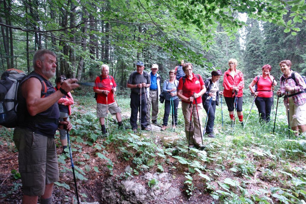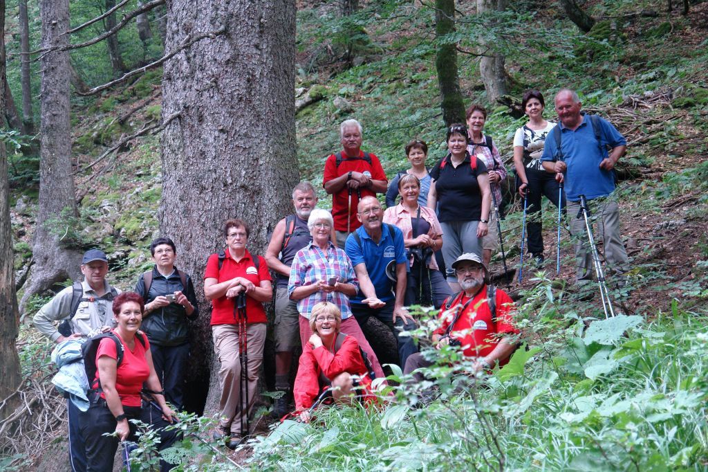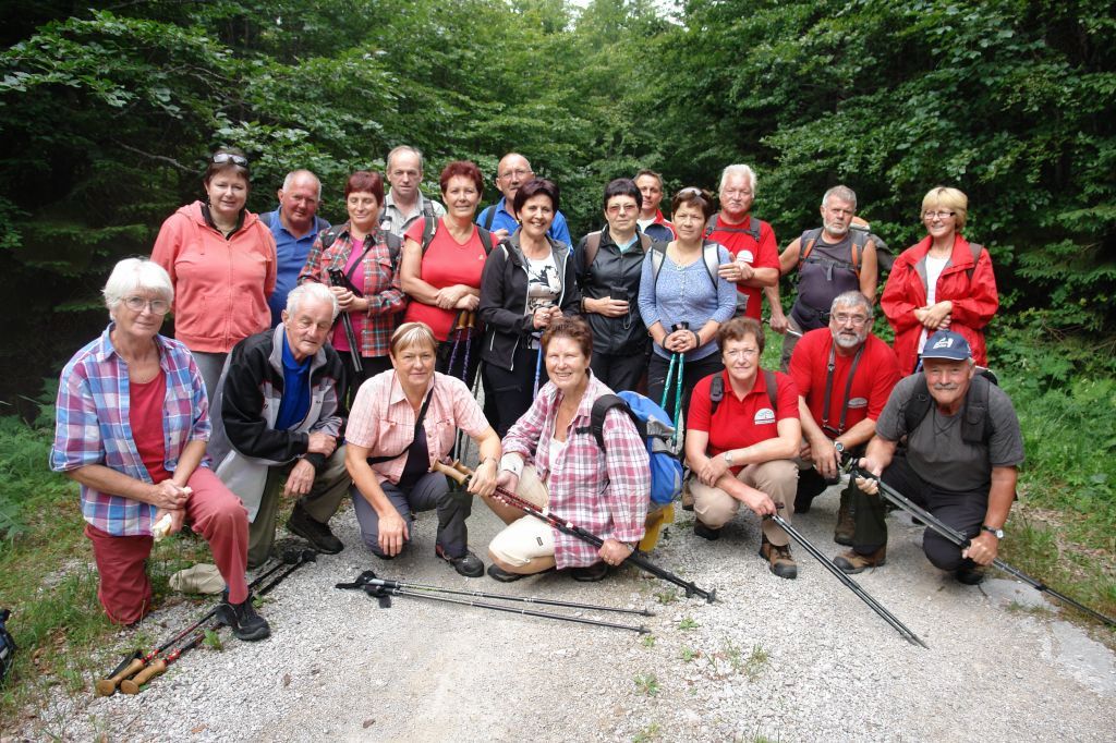Zgodaj je bilo treba vstati, za na pot proti Snežniku, ko smo se zjutraj začeli zbirati pri naši Športni hali za odhod smo bili veseli saj se je začelo čudovito sončno jutro. Pot nas je vodila mimo Velenja, Ljubljane, Postojne in naprej proti Ilirski Bistrice, ter nato proti Sviščakom. Ko smo prispeli so nas že čakali naši prijatelji. Po kratkem pozdravu smo si izmerili krvni sladkor, pritisk in se malo okrepčali. Kmalu nas je Vodič Vilko začel opozarjati, da moramo iti naprej, da nas ne bo čas preganjal. Z nami je bila tudi nova predsednica društva gospa Andreja Rebec, pozdravit in izmerit sladkor v krvi pa je prišel tudi prejšnji dolgoletni predsednik gos. Ivan Bergoč, ki pa se nam ni pridružil na pohodu zaradi drugih obveznosti. Pot nas je vodila pod mogočnim Snežnikom 1796m. Snežnik, ki je ob enem tudi najvišji izven alpski vrh. Koča, imenovana po pesniku Miroslavu Vilharju, stoji malo pod vrhom, ki jo opravlja PD Ilirska Bistrica. Z Velikega Snežnika je širok razgled po vsej slovenski deželi od morja,Triglava vse do našega lepega Pohorja. Vilko nas je opozarjal zaradi varnosti, kako naj hodimo, saj so velike globoke globače, in možnosti zdrsov ob poti. Hodili smo okoli Snežnika in si ga ogledovali iz vseh strani. Prvo smo si na kraju Ahec ogledali Andrejev studenec (moške vode). Tu nam je Vilko pripovedoval dogodek iz davnih časov in pa seveda pomen tega izvira, ki nikoli ne poide. Pot nas je vodila naprej proti Kozleku, kjer smo si ogledali tudi najvišjo smreko, saj meri zavidljivih 42 m visoko in nas jo je objelo kar 6 pohodnikov. Hoja po brezpotju nas je kar utrudila, toda na vrhu smo imeli kaj videti; kjer Bog vetrov s Severa hoče imeti oblast nad gozdom. Saj ne moreš niti opisati kaj se dogaja s tem lesom. To je treba resnično samo videti (malo v slikah). Počasi smo se odpravili nazaj na Sviščake, kjer nas je čakalo kosilo. Po prijetnem kramljanju ob kosilu smo se pomerili še v (bočanju) balinanju moški in ženske. Moram povedati, da je bilo kar veselo. Čas nas je priganjal in odpravili smo se nazaj proti Koroški. Dogovorili smo se, da se vidimo na Koroškem.