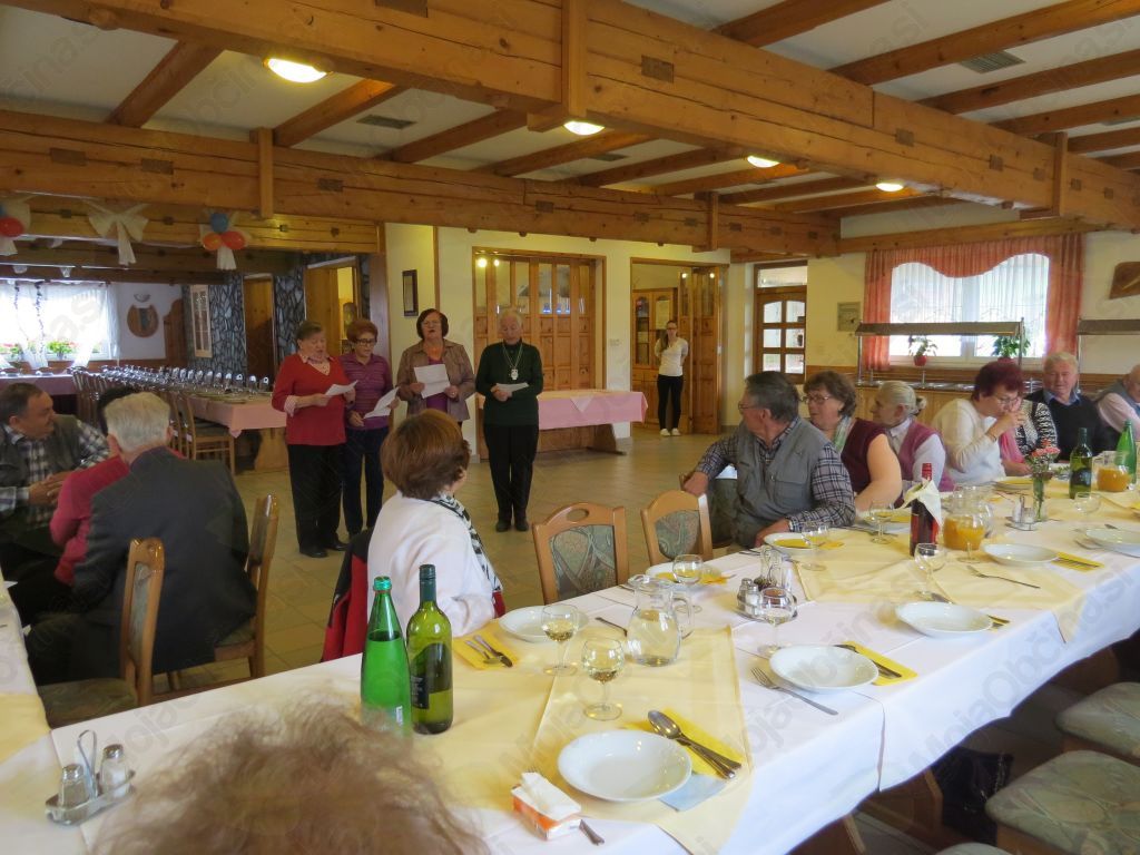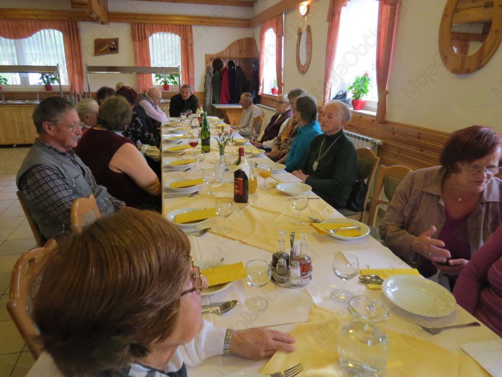 Ob 11. uri jim je bilo postreženo kosilo. Nato so vsi skupaj nazdravili in med njimi je stekel prijeten pogovor.