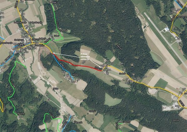lokalne ceste LC 377071 na relaciji Podgorje – Metulov breg, natančneje od odcepa Preseka do območja stanovanjskih hiš (Podgorje 90, 90A, 89, 89A).