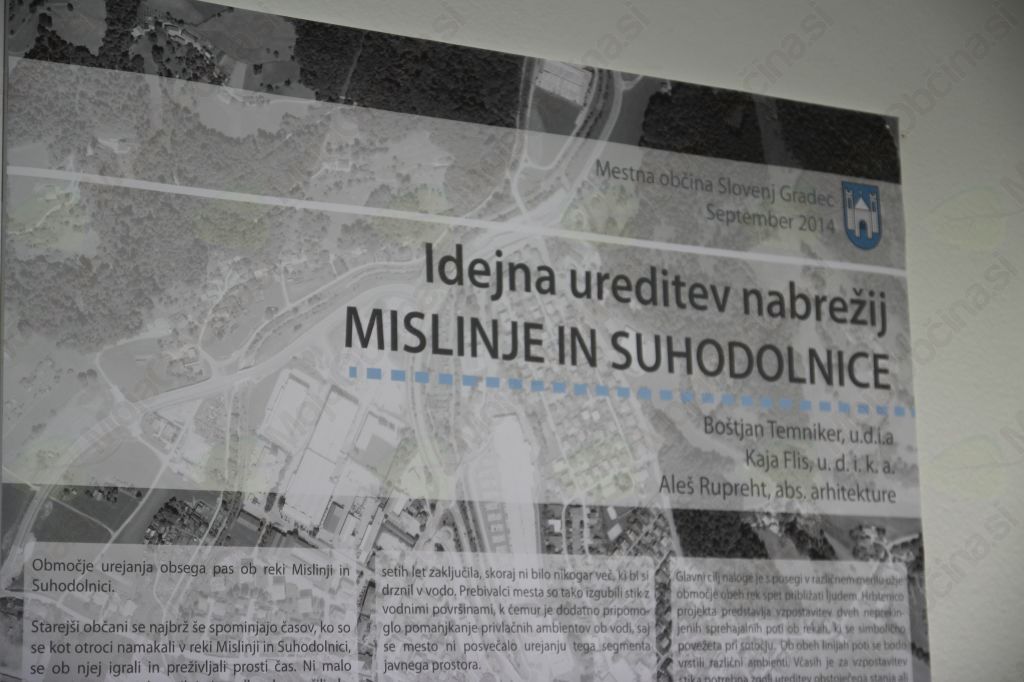 Mestna občina Slovenj Gradec je v četrtek, 18. 9. 2014, ob 17. uri, v Mestni galeriji odprla razstavo, na kateri so predstavljene idejne zasnove, ki jih MOSG načrtuje v okviru projekta oživljanja nabrežij rek.