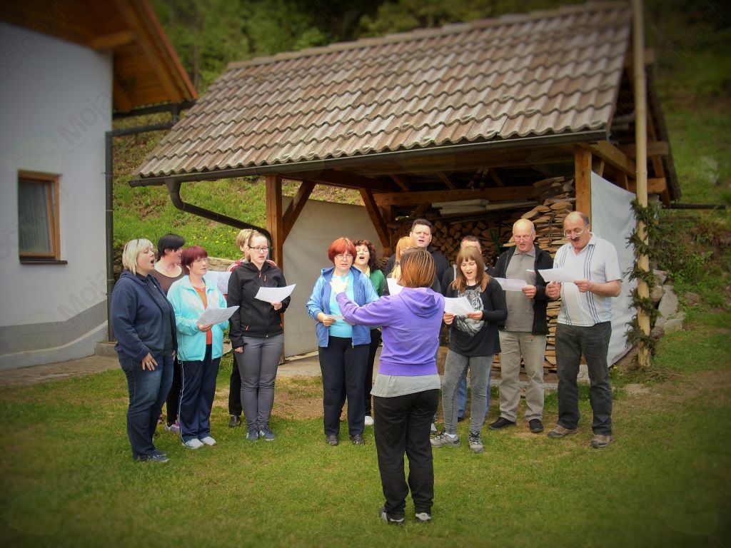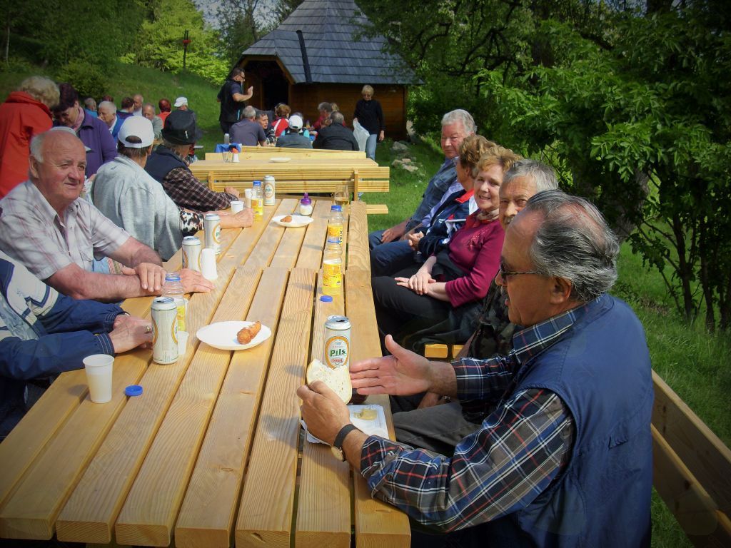 Ko so prispeli na kočo, jih je tam čakala malica. Seveda so se na koči v prijetnem druženju še kar nekaj zadržali, veselo prepevali, se poveselili in nabrali novo energijo za povratek proti domu. Prijetno utrujeni in ponosni, da so zmogli tako dolgo pot, so se v poznih popoldanskih urah vrnili nazaj na svoje domove.