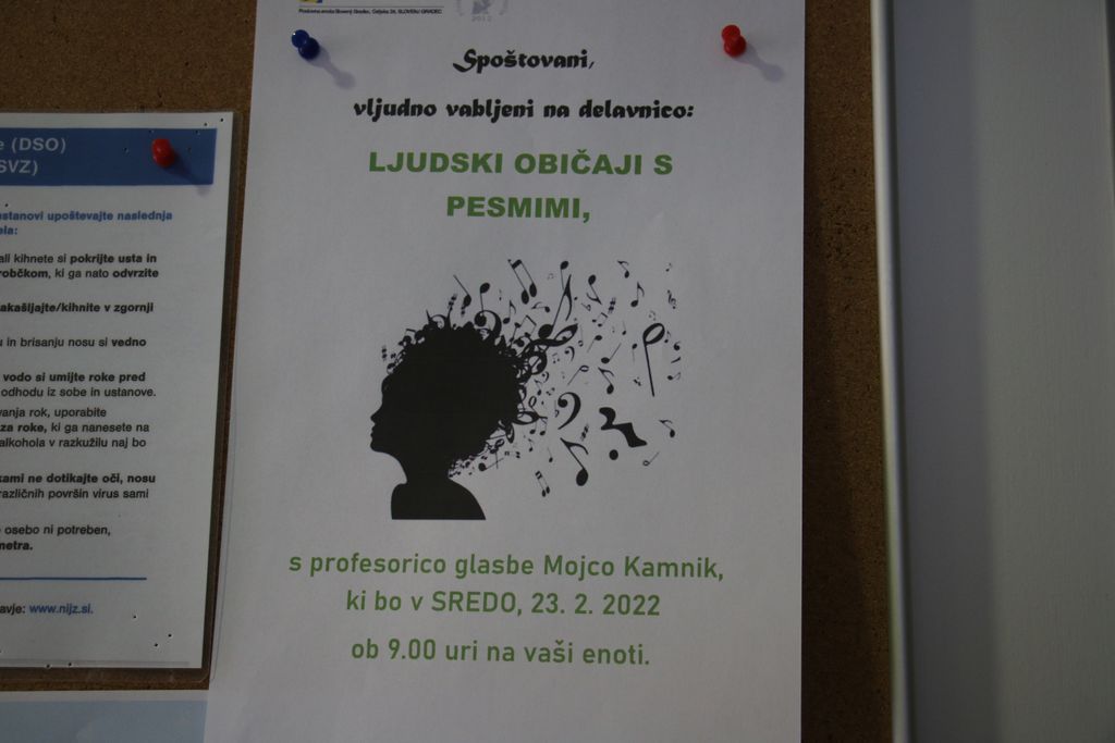 Vseživljenjsko učenje domuje tudi v našem domu. Tako je glasbena pedagoginja Mojca Kamnik imela predavanje o pustu na Slovenskem. Obudili smo spomin na že vedeno in izvedeli tudi kaj zanimivo novega. Predavateljici smo dolžni iskreno zahvalo.