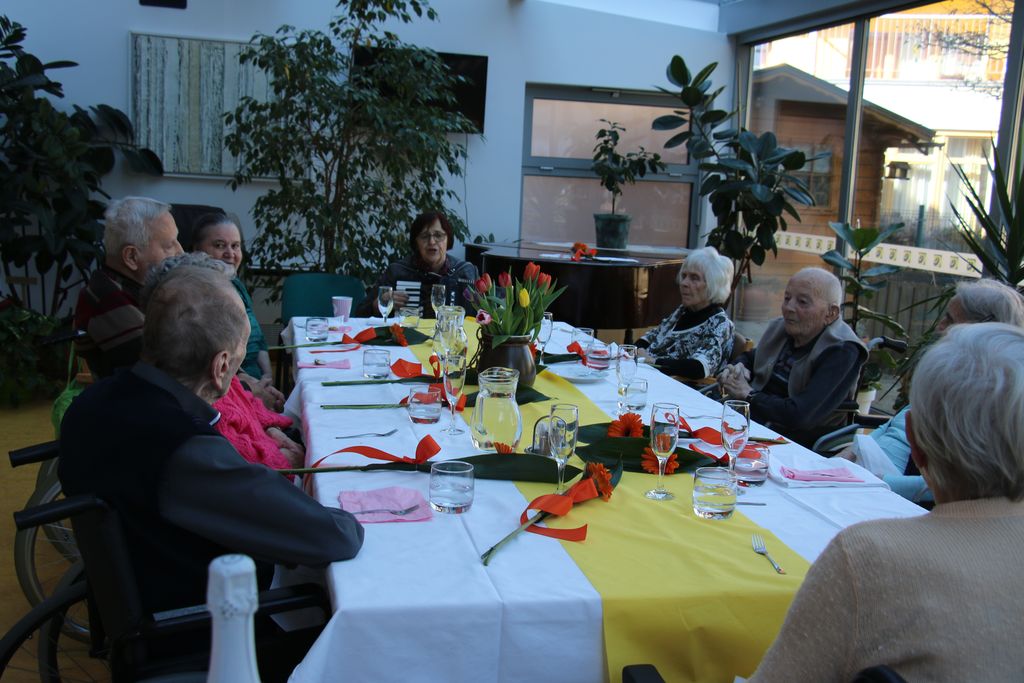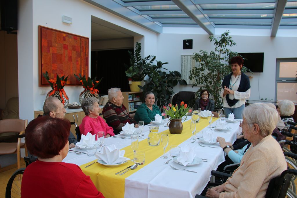 Po dveh letih epidemije se je vrnilo tudi skupno praznovanje rojstnodnevnikov iz januarja in februarja. Bilo je prijetno slavnostno in domače, k čemur je prispevala slavnostno kosilo (res imenitno!) in prostovoljka s harmoniko, gospa Tatjana Lušnic. Sproščenega in veselega pogovora ter petja kar ni hotelo biti konec. Rojstnodnevniki se ganljivo zahvaljujemo za to.