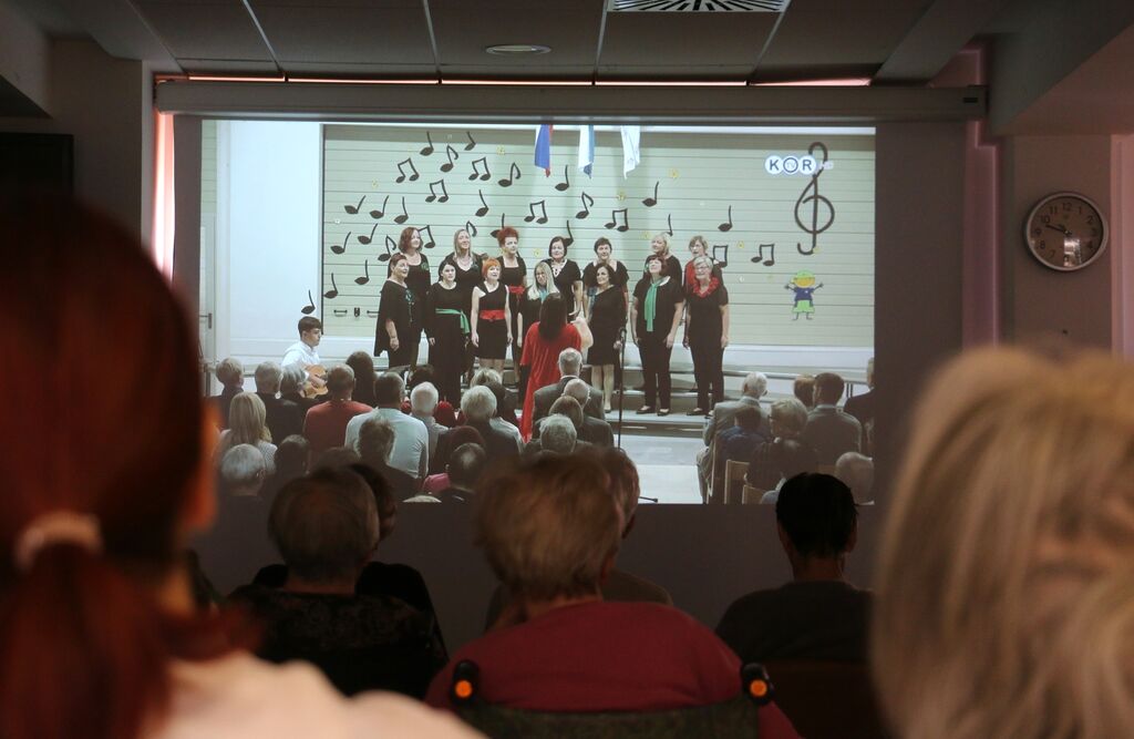 Ogledali smo si posnetek Festivala srečanja pevskih zborov Mislinjske doline ter se poklonili častnemu občanu Mestne občine Slovenj Gradec, Jožetu Leskovarju.
