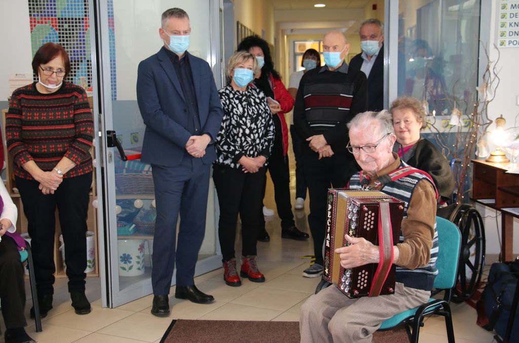 Spodbuden in dobrodošel je tudi tradicionalni obisk župana MO Slovenj Gradec, Tilna Kluglerja, ki je vsem stanovalkam in stanovalcem zaželel obilo zdravja in zadovoljnega bivanja v res prijetnem domu. Rad nas prijateljsko obiskuje in je bil vesel tudi našega glasbenega programa.