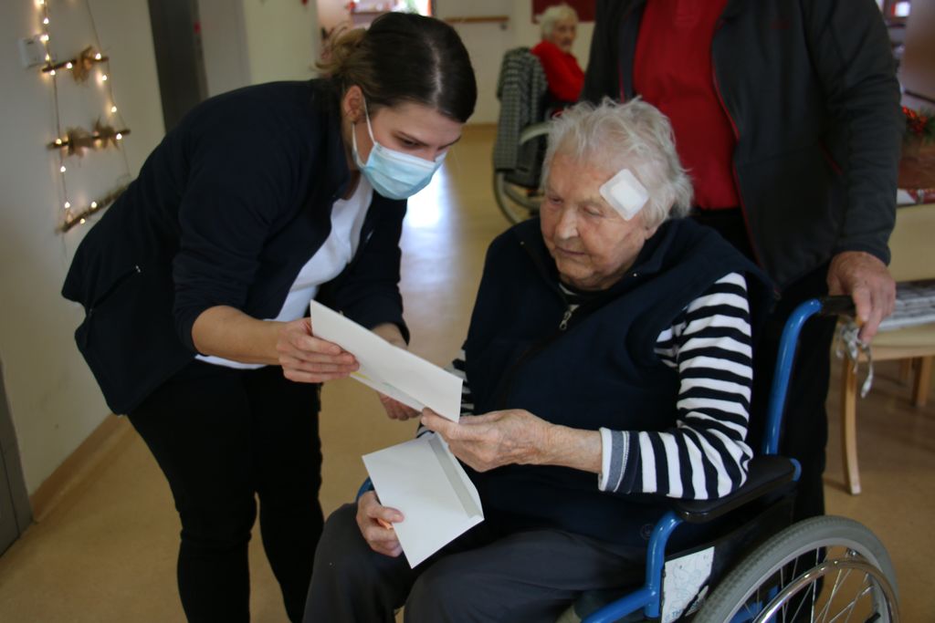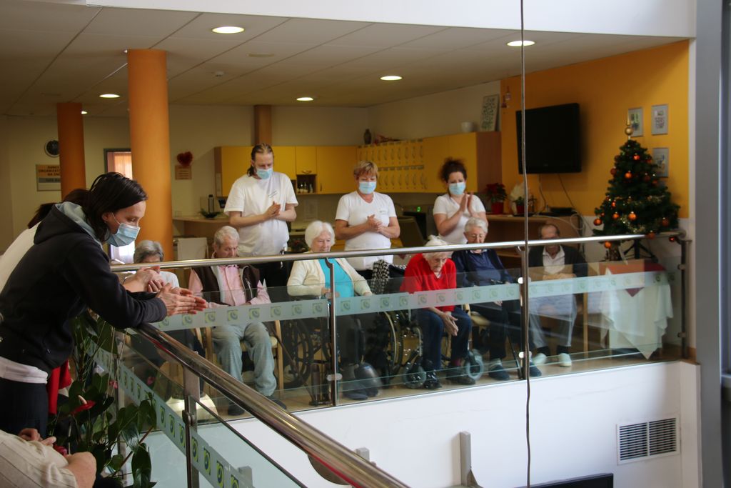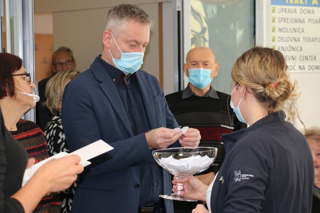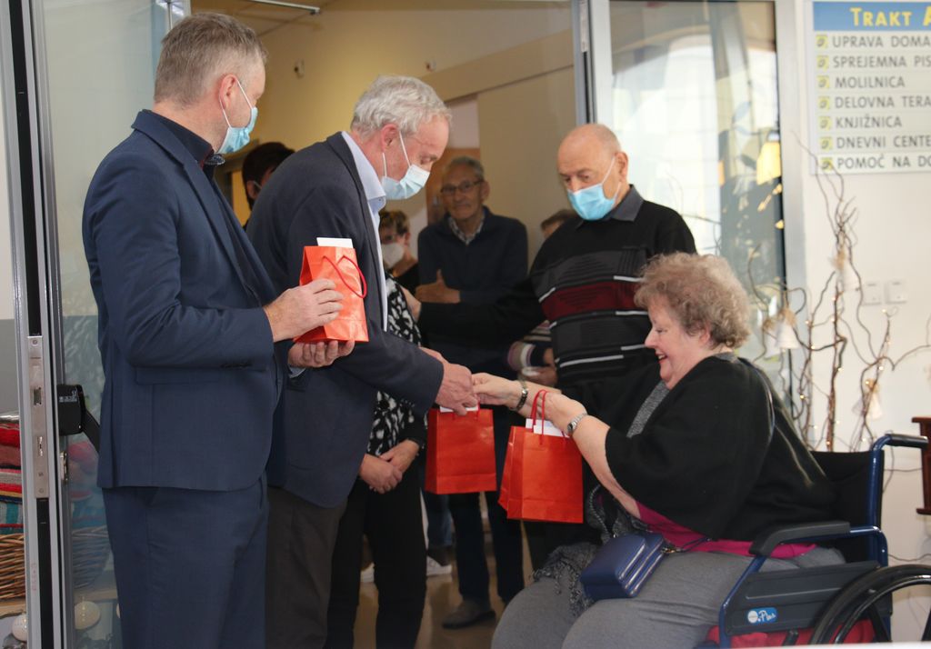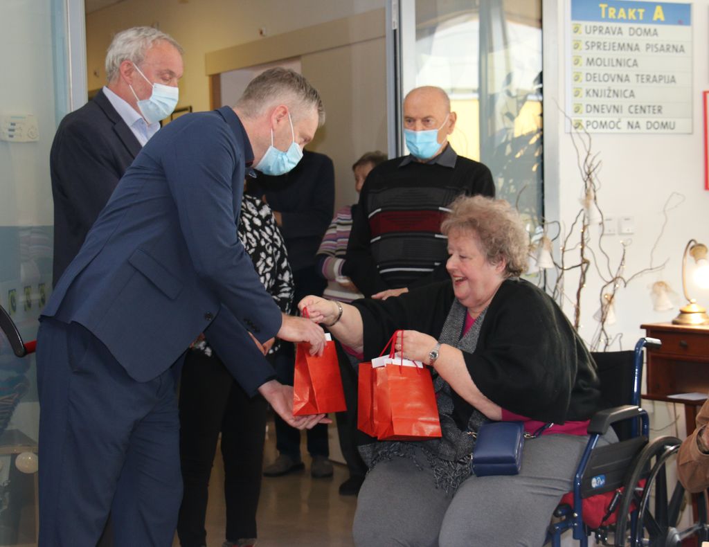 Še posebej dobrodošel obisk predstavnikov društva upokojencev Slovenj Gradec, s predsednikom Janezom Golograncem, ki nam je prinesel darilo in iskreno zaželel vse dobro. Obiskala nas je tudi prijazna dobrotnica akcije »Božiček za en dan« in z žrebanjem obdarila našo stanovalko, gospo Lesnik.