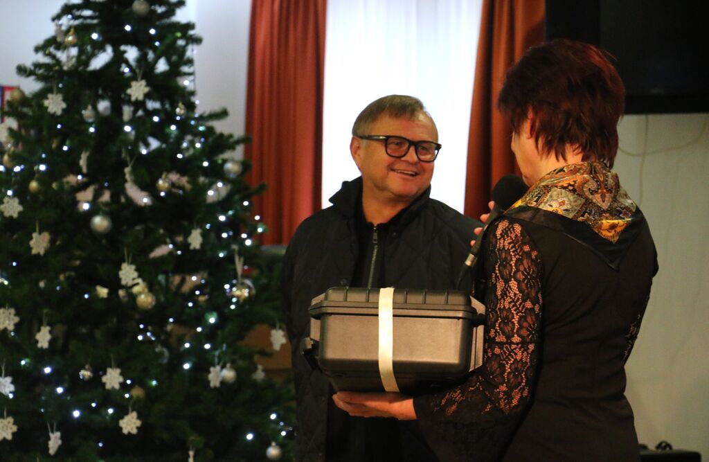 - gospoda Marko Pogorevc - organizator donacije in Branko Malek - predstavnik invalidov, ki sta ob tej priložnosti izvedlapredajo slušne zanke - pomembne pridobitve, ki bo našim naglušnim stanovalcem omogočila boljše razumevanje govora.