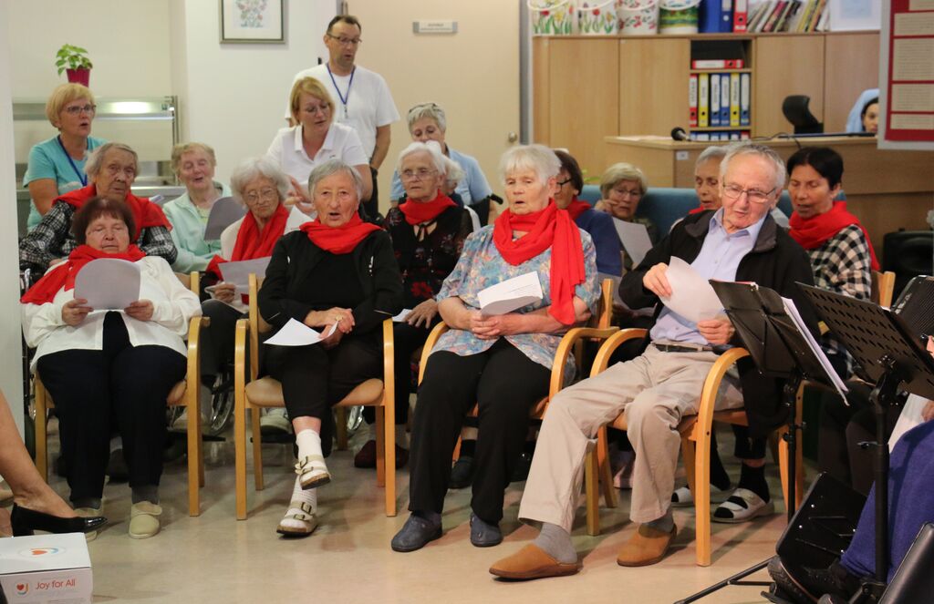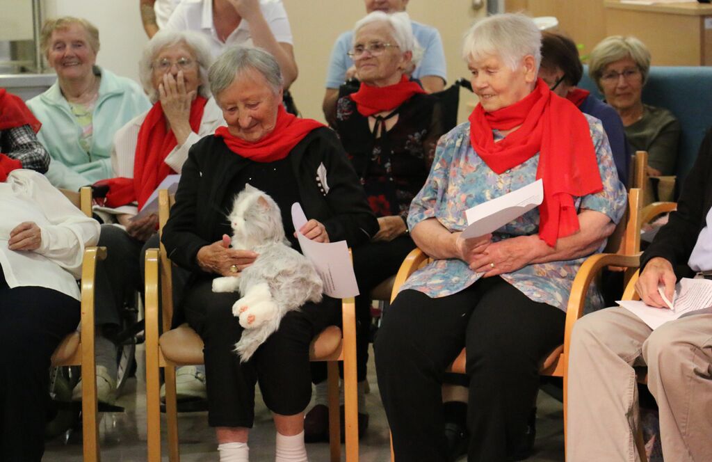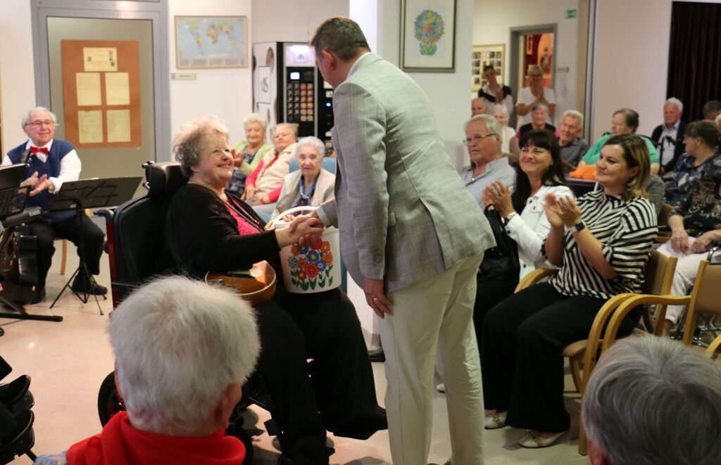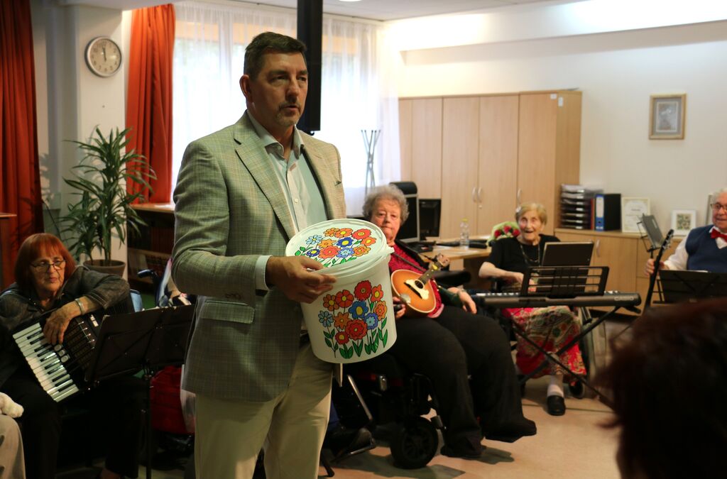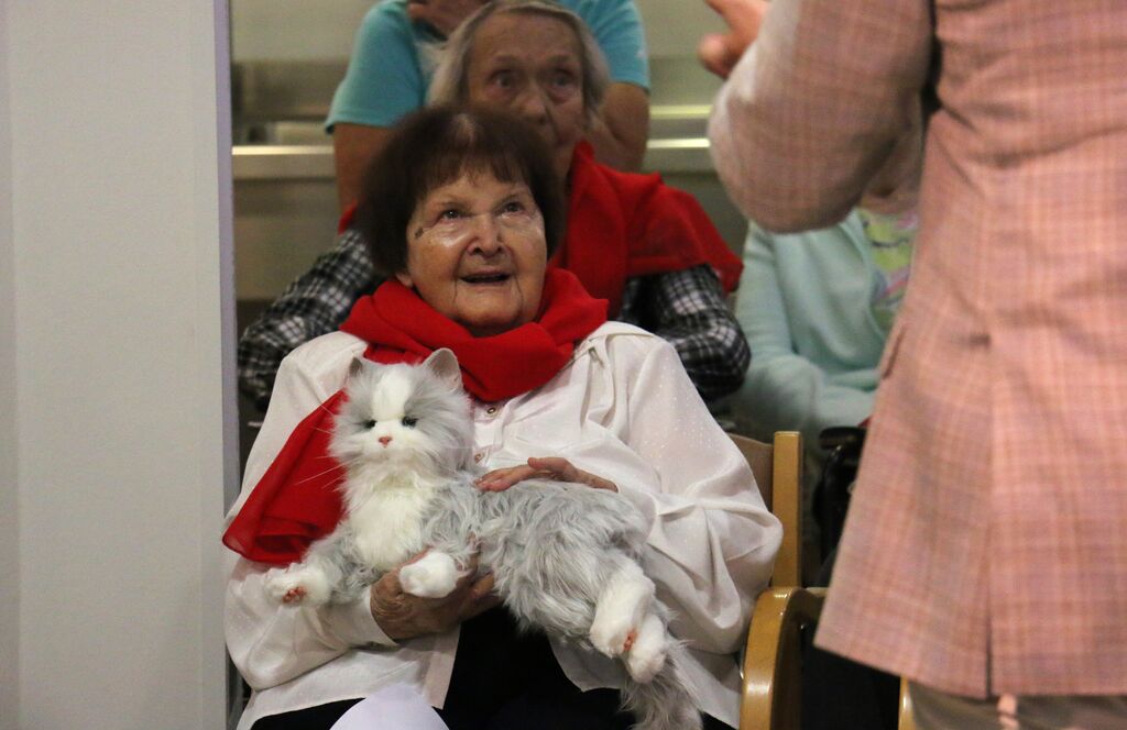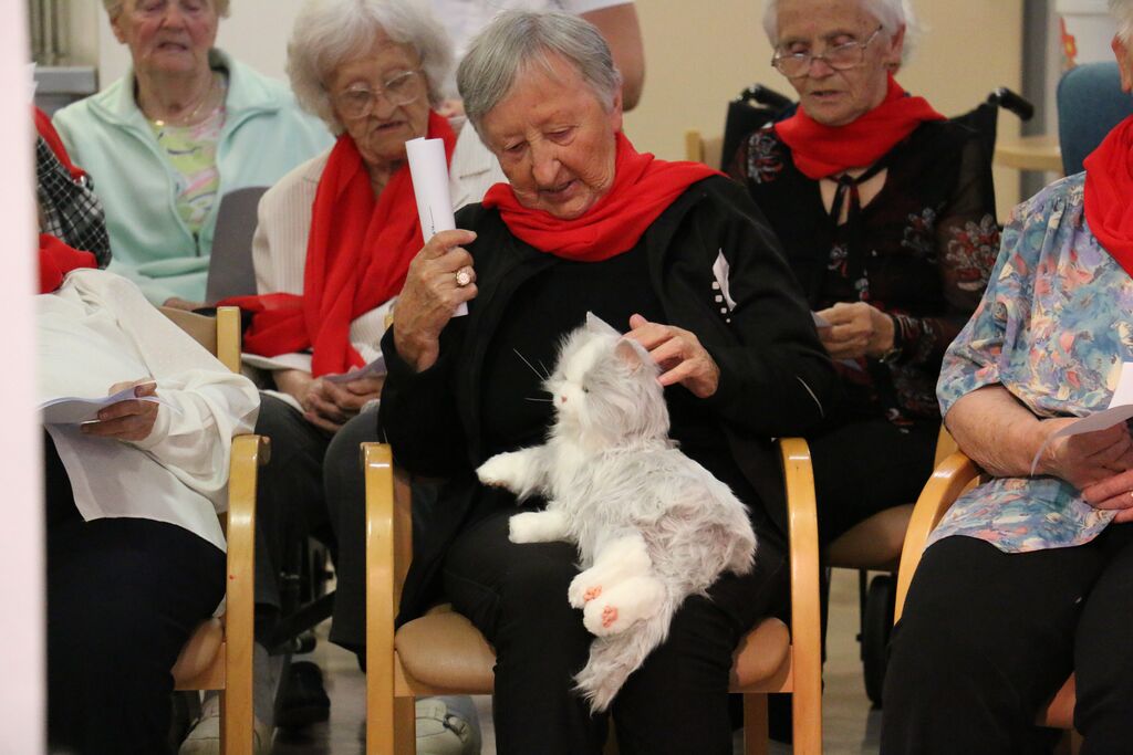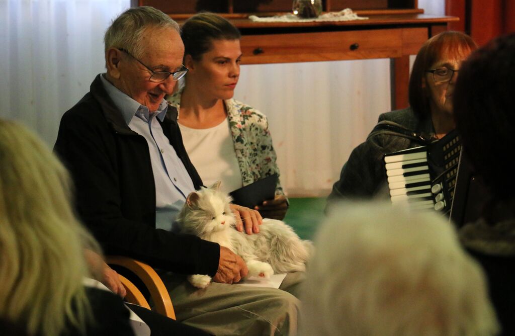 Počaščeni smo, da je naš dom prav danes, 17. 9. 2025, ko mineva 17 let od odprtja, obiskal gospod Aleš Musar, ki je našim stanovalcem podaril terapevtsko mačko, ki se uporablja za lajšanje simptomov oseb z demenco. Ob tej priložnosti se je prvič predstavil naš projektni pevski zbor Zelene enote, nastopil pa je tudi Hišni band 6M.