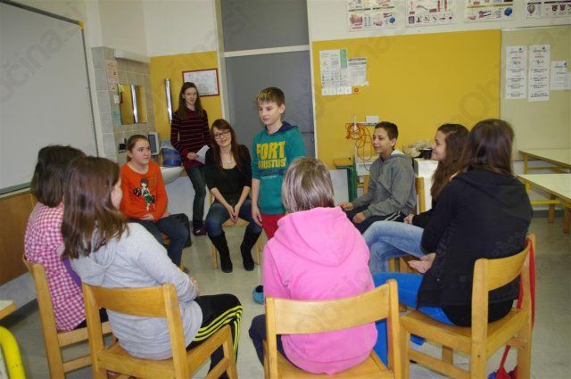 V delavnicah so se osmošolci pogovarjali o čustvih, zdravju, medsebojnih odnosih in samozavesti. No, ja, nekateri imajo samozavesti že kar veliko … zagotovo pa je vsem zrasla, ko so na koncu zapisali lepe misli drug o drugem. Devetošolci so se bolj posvetili temu, kako obvladovati stres in ravnati asertivno - namesto negativnega scenarija si napravimo pozitivnega.