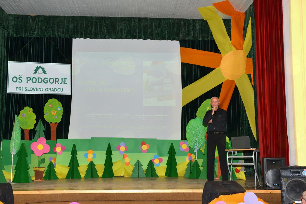 Za dobro iztočnico zbiranja potrebnih sredstev za izgradnjo solarne elektrarne smo 11. maja v Kulturnem domu Podgorje organizirali okroglo mizo z gostom Ivom Boscarolom, direktorjem podjetja Pipistrel d.o.o. Ajdovščina, podjetnikom svetovnega formata. Povabili smo še naše cenjene in najuspešnejše podjetnike v okolici. Zelo pomemben dan, ki smo ga začeli načrtovati že konec prejšnjega koledarskega leta se je hitro bližal, napetost z vzhičenjem je vse bolj naraščala. Še zadnja potrditev, da Ivo Buscarol pride, nas je še dodatno motivirala, da pripravimo vse, kot je načrtovano. Ura za šesto popoldne je odbila in skoraj vsa pripravljena mesta za okroglo mizo so bila popolnjena. Zelo smo bili veseli, da je prišel tudi župan Andrej Čas. Začelo se je z veselim plesom šolske folklorne skupine pod mentorstvom Majde Tamše Horvat. Takoj po uvodnih pozdravih so besedo prevzeli učenci podjetniškega krožka pod mentorstvom Aleksandre Hovnik, ki so odlično pripravljeni predstavili namen okrogle mize. Besedo je dobil gost Ivo Boscarol, ki je predstavil razvoj svojega podjetja. Če rečem, da nas je razvajal z nasveti in modrostmi, ne pretiravam. Deležni smo bili čudovitega predavanja iz prakse enega najuspešnejših podjetnikov Slovenije. V jedro diskusije nas je povedla Barbara Polutnik Brusnik, ki je znala v vsakem sodelujočem spodbuditi pripravljenost za sodelovanje in k podpori projekta. Če še nismo bili prepričani o možnosti izgradnje sončne elektrarne ob uradnem zaključku okrogle mize, se je uresničitev vedno bolj prikazovala ob prijetnem pogovoru potem, po uradnem delu. Navdušeni smo, da lahko rečemo: »Letos med poletnimi počitnicami bo na strehi OŠ Podgorje zrasla sončna elektrarna«. In res, že naslednji dan po okrogli mizi se je oglasil predstavnik podjetja PVSOL Andraž Aber, da je fotografiral vse, kar je potrebno za takojšnje urejanje dokumentacije. Zelo smo hvaležni PVSOL podjetju, da bo namestitev za šolo izvedena še posebej finančno ugodno.