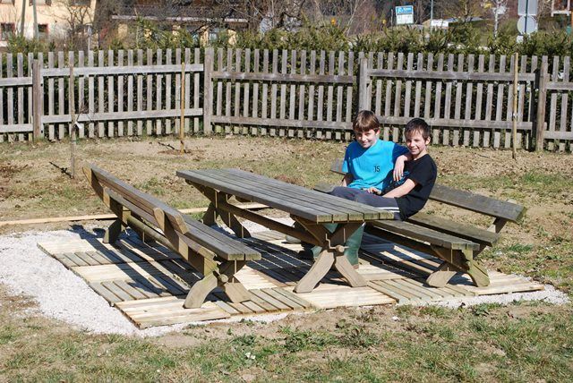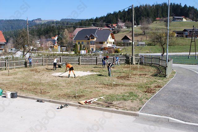 Naslednji dan je bil po biodinamičnem koledarju ugoden dan za saditev drevja. Učenci in učitelji smo skupaj poprijeli za lopate in grablje in do konca pouka uspešno posadili vse sadike in grmovnice. Na sredini sadovnjaka smo uredili prostor za počivanje oziroma za drugo naravoslovno učilnico, pri kateri bomo lahko opazovali nastajanje plodov od cveta do ploda in seveda vse živali, ki k temu pripomorejo.