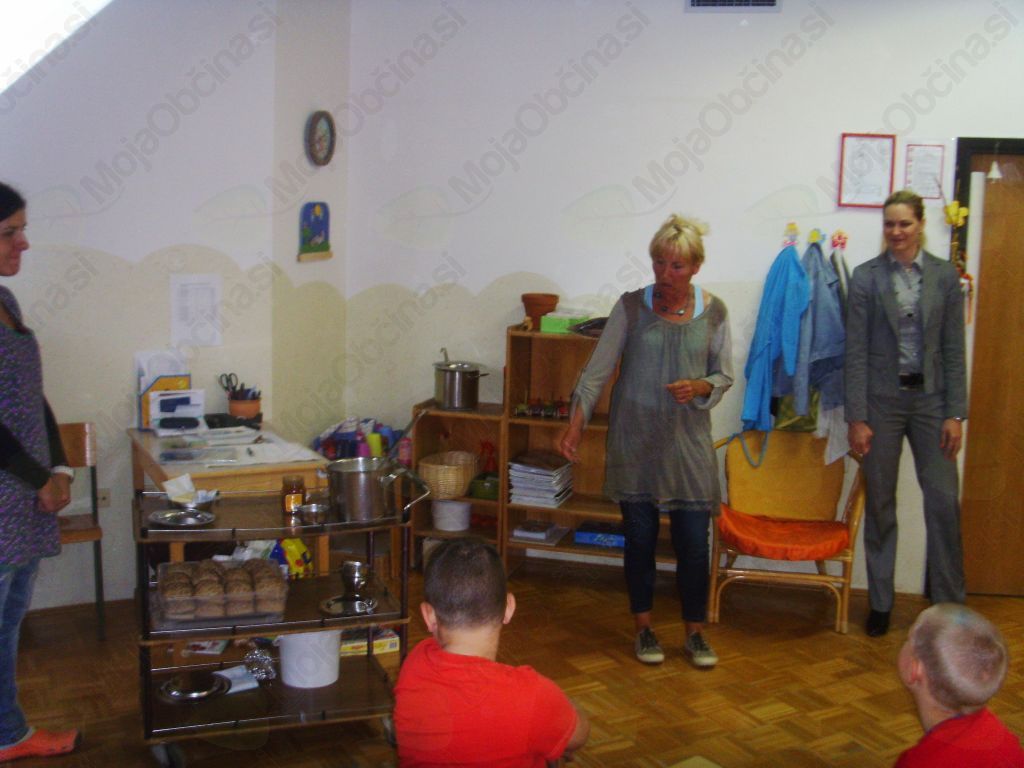 Pri zajtrku je prisostvovala področna vodja, ki je kasneje otrokom predstavila, kako pečejo kruh, kako pride sadje na trgovinske police, kaj pomeni danes vedno bolj poudarjeni EKO izdelek in zakaj je dobro jesti zdravo hrano.