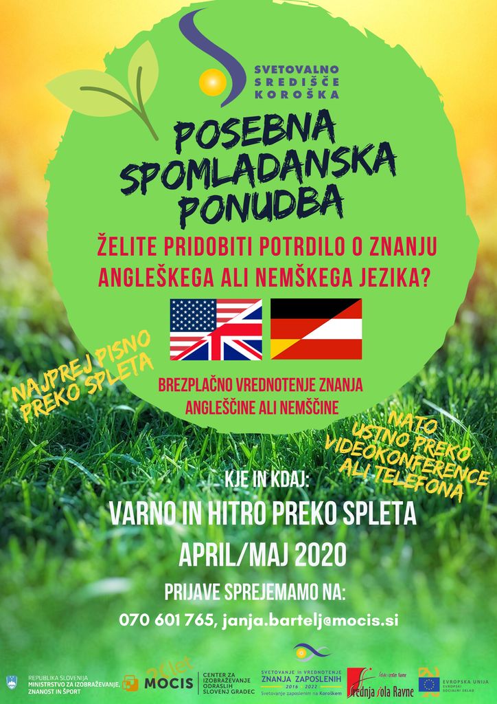 Svetovalno središče ISIO Koroška vas vabi na brezplačno vrednotenje (testiranje) sporazumevanja v angleškem in nemškem jeziku.