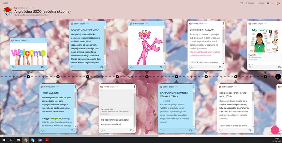 Jezikov so se na daljavo najprej učili udeleženci U3ŽO, ki so dobili povezavo do skupne spletne table »Padlet«. To je enostavno spletno orodje, ki omogoča sodelovanje na daljavo. Tam so udeleženci lahko dostopali do videoposnetkov, virtualnih nalog, poučnih iger, kvizov in podobnih vsebin, preko katerih so se jezika učili na zabaven in sproščen način.