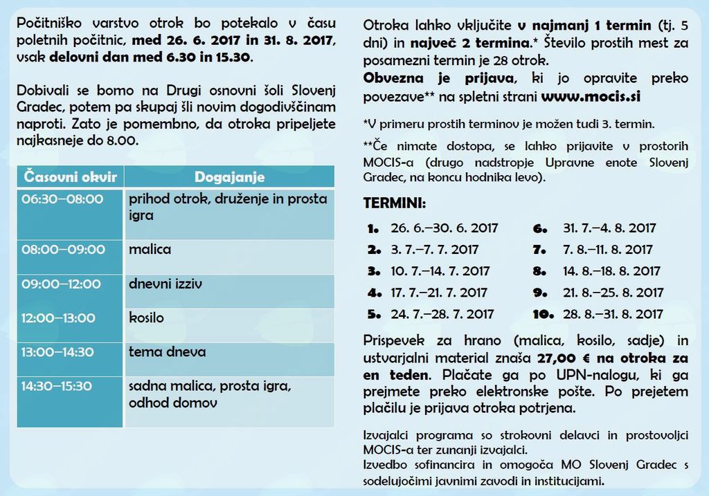 OBVEZNE prijave bodo potekale od 19. junija do 22. junija 2017 oziroma do zapolnitve mest na spletni strani: www.mocis.si.