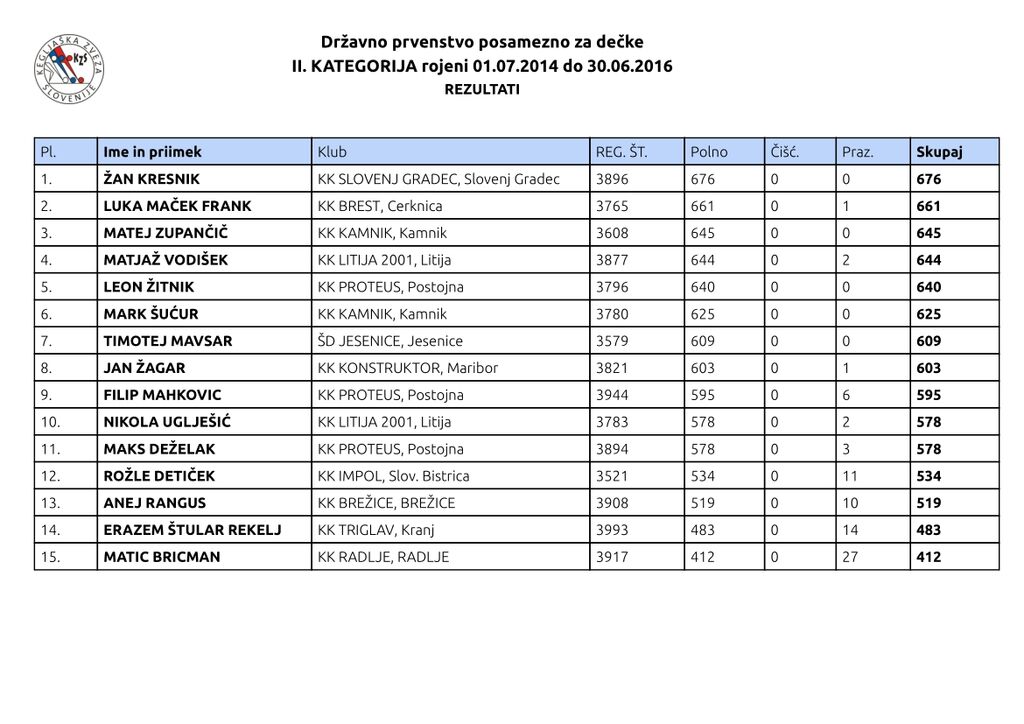 V 2. kategoriji dečkov je Žan Kresnik nakazal da gre po stopnjah brateca Jana. V 2. kategoriji se odigra 120 lučajev na polno. Žan je podrl 676 kegljev in se uvrstil na 1. mesto. Se pravi, da ima povprečje 84,5 keglja na 15. metov. 676 podrtih kegljev deljeno z 8 je 84.5 keglja na 15 metov. To je vrhunski rezultat, glede tega da je 14. 5. 2025 napolnil 9 let, odigral z malimi kroglami, premera 14. To je vrhunski rezultat in upam da bo treniral pravilno in se veselil naslednjih nastopov.