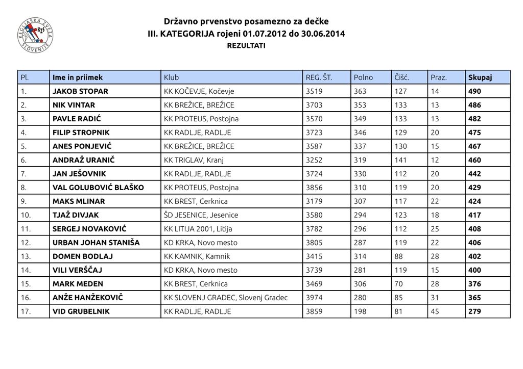 V tretji kategoriji dečkov je nastopil Anže Hanžekovič. Tudi prvi krstni nastop, ki pa ga je odigral tako suvereno, kot da bi že več let treniral. Ni dosegel ne vem kakšnega rezultata, vendar njegov suveren, zrel dostop do tekmovanja nakazuje da se lahko razvije v vrhunskega tekmovalca.