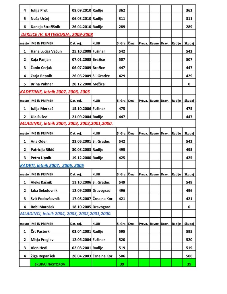 Tekmovanja se je udeležilo 39 mladih. Odlična udeležba. Največ iz KK Radlje.