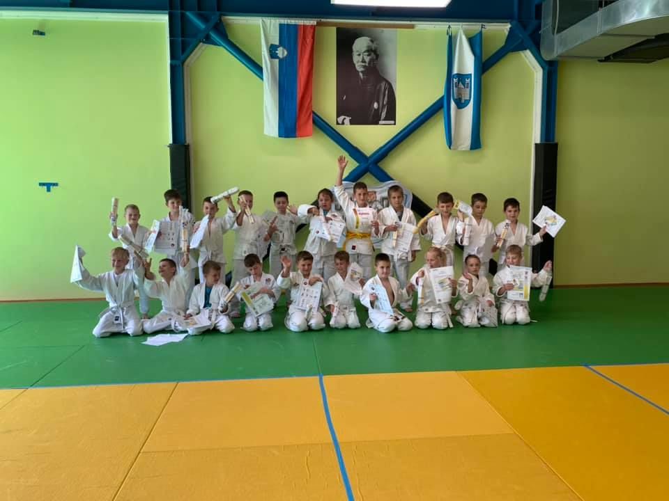 Pred komisijo Judo zveze Slovenije je v regijskem judo centru v Športni dvorani Slovenj Gradec v ponedeljek in torek, 22. in 23. 6. 2020 demonstriralo znanje iz šole padanja, gimnastike, zgodovine, organiziranosti in teorije juda 107 mladih predstavnikov kluba. Vsi so izpit uspešno opravili. 34 judoistov in judoistk si lahko sedaj ponosno okoli pasu zaveže belo-rumen pas. 21 rumenega, 30 rumeno-oranžnega, 12 oranžnega, 3 oranžno-zelenega, 5 zelenega in 2 modrega.