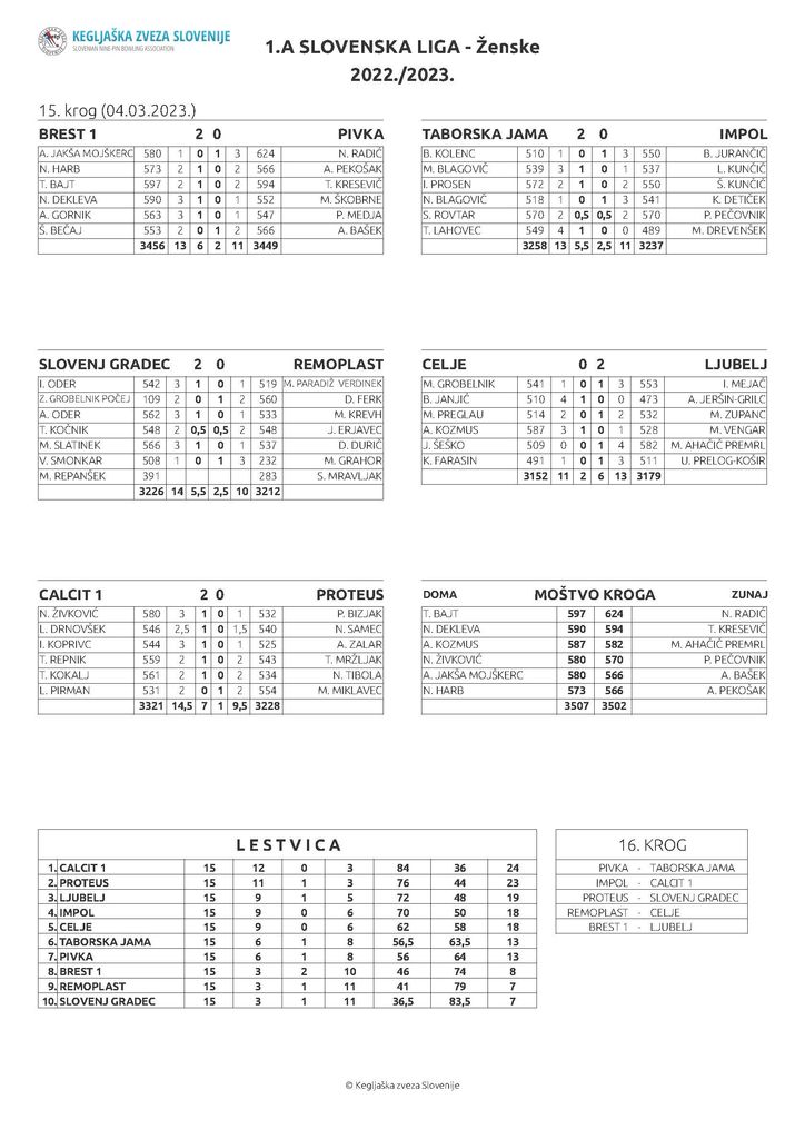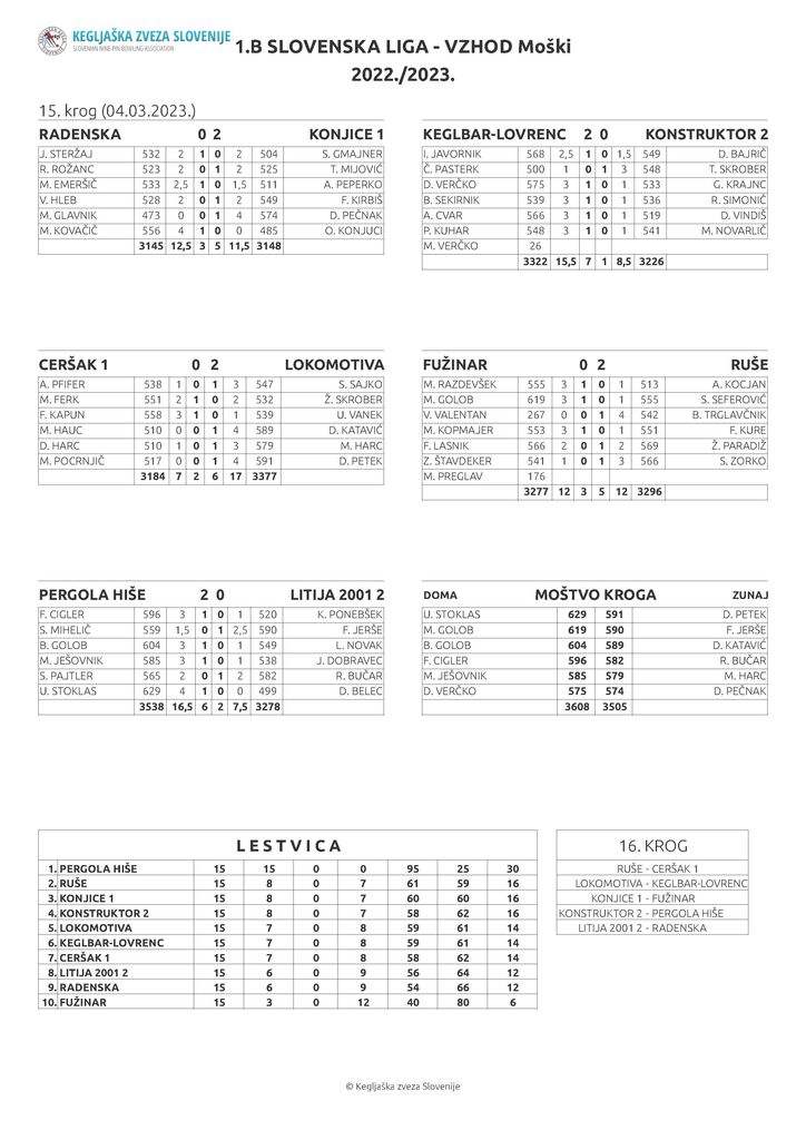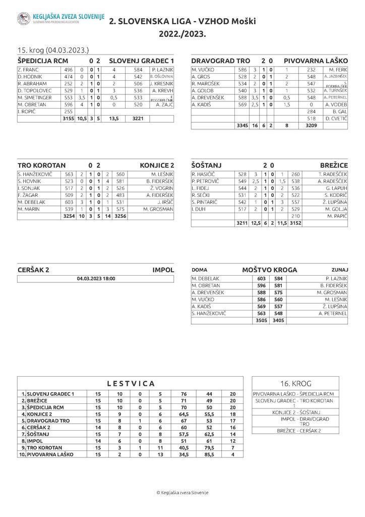 15. in 10. krog Koroških ekip v SLO ligah, Slovenj Gradec, 4.3.2023