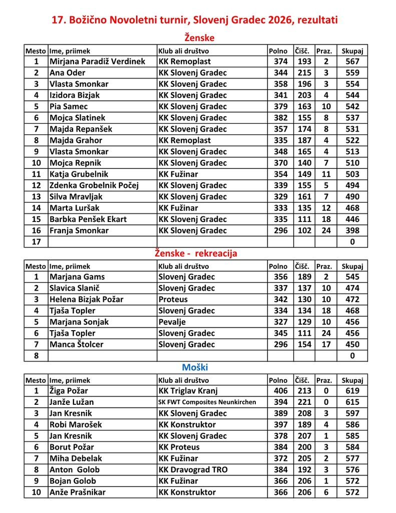 KK Slovenj Gradec je organiziral in izvedel že 17. Božično Novoletni Turnir v kegljanju.
