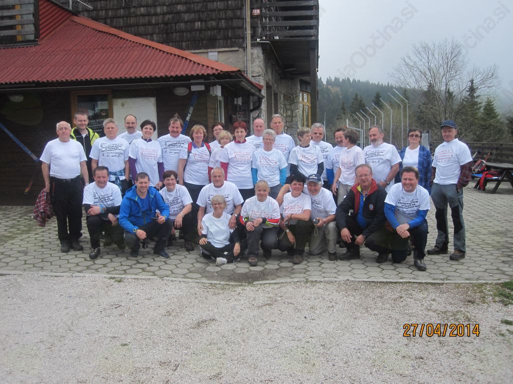 Pri jutranjem vzponu smo po treh urah hoje prišli do Partizanskega doma na Kopah, kjer je vsak pohodnik dobil spominsko majico Spoturja. Letos kolesarske dirke ni bilo, zato smo si primerno praznično vzdušje naredili planinci sami z druženjem, živahnim klepetom in »preoblačenjem« spominskih majic. Spoturjeve majice za skupinsko fotografijo smo narobe obrnili (hrbtni del majice spredaj), da se na fotografijah vidi napis pohoda .