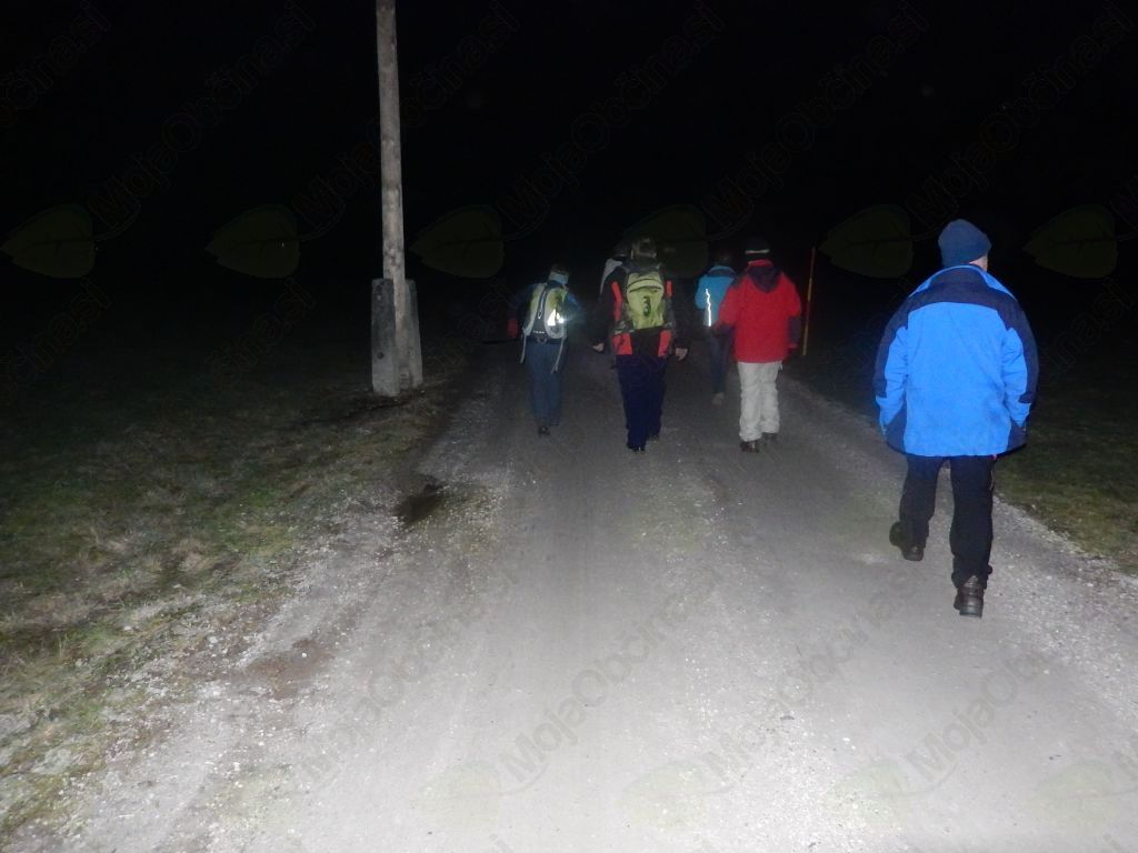 Cilji naših pohodov so bili različni – gozdne poti, makadamske ceste, kolesarska steza, pa tudi pločniki okoli Slovenj Gradca. Poskrbeli smo za varnost, vzorno smo se opremili z odsevnimi znaki in naglavnimi lučkami. Pričakovali smo tiste prave zimske pohode, pa je bil tak samo eden. Na prvih pohodih smo opazovali že močno razcveten teloh, hodili po blatu razmočene Luštne poti, namesto bund, kap in rokavic sta zadoščala majica in debelejši flis. Zadnji januarski pohod do Šmartnega, cerkve sv. Jurija in čez Legen nazaj v Slovenj Gradec pa je le bil tisti pravi zimski popestren s kepanjem in stresanjem snega z dreves na pohodnike. Vanč je že popoldan naredil gaz, da smo zvečer lažje hodili. Prve dni februarja, ko nas je prizadela poledica in žled v gozdovih, smo morali pohode preusmeriti iz gozdov na lokalne ceste. Tako smo preko Legna šli v Pameče in se vračali skozi Stari trg proti Žančanom in mimo silosov nazaj do Konja. Dva izmed pohodov sta bila na Homec - eden mimo Toplarne in skozi Mestni gozd na Homec, drugi pa v obratni smeri podaljšan ob polni luni do cerkve Sv. Jurija, kjer smo ob zadnjem pohodu imeli tudi kratko sladko malico.