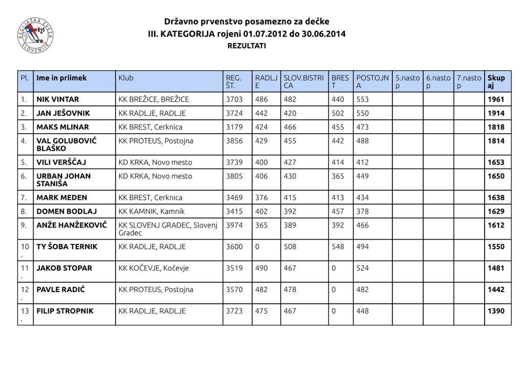 Pri dečkih v 3. kategoriji se je tekmovanja udeležil Anže Hanžekovič. Podrl je 466 kegljev, postavil svoj osebni rekord na tekmovanjih. Uvrščen je na 9. mesto v skupnem seštevku. Konstantno, kot tudi drugi, stopnjuje svoj rezultat. Vedno je boljši. Ima vrhunski pristop do tekmovanja, če slabo vrže lučaj se zna skoncentrirat in popravit met. Slab met ga ne zmede. Čez kako leto bo vrhunski kegljač. Čestitke.