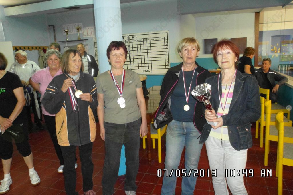 Ženske: Marjana Gams 258 kegljev in Marička Kostenjevec 240 kegljev