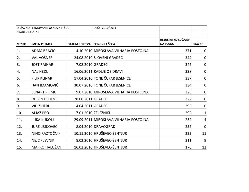 Danes so se finalnega dela šolskega tekmovanja na kegljišču v Kranju udeležili tekmovalci Koroški šol. Val Vošner iz 1. OŠ v Slovenj Gradcu je osvojil srebrno medaljo v kategoriji mlajših dečkov.