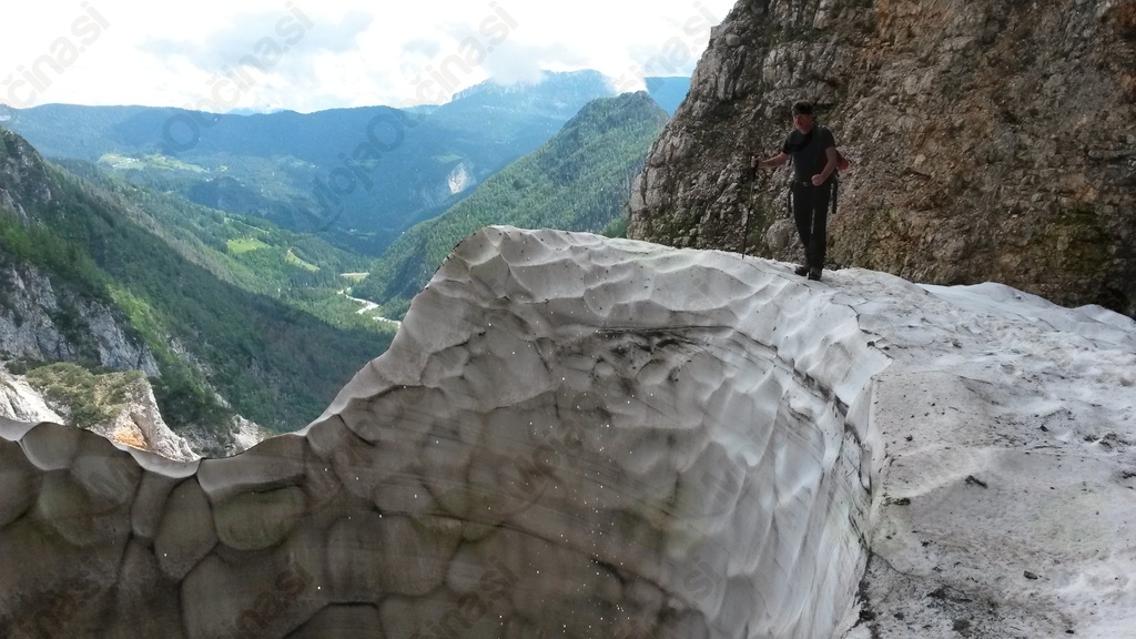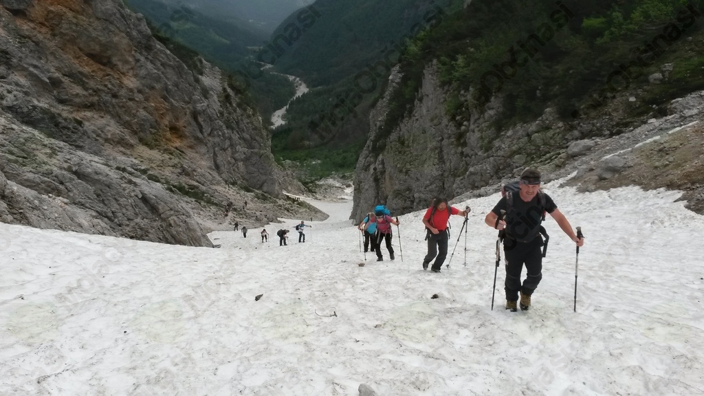 Velikost in globina samega škafa je odvisna od snežnih padavin od posameznega leta. V tem času se tudi razcvetijo različne gorske rastline,zelo znana gorska roža v tej dolini je tudi lepi čeveljc iz rodu orhidej. Dan je bil presenetljivo topel. Napotili smo se od Matkove koče preko prodišča do obronka gozda, kjer se je pot nadaljevala po ozki poti strmo v zavetju listnatega drevja vse do snežišča. Po slabi uri vzpenjanja po snežišču smo dosegli krater - škaf, ki ga izdolbe padajoči slap.
