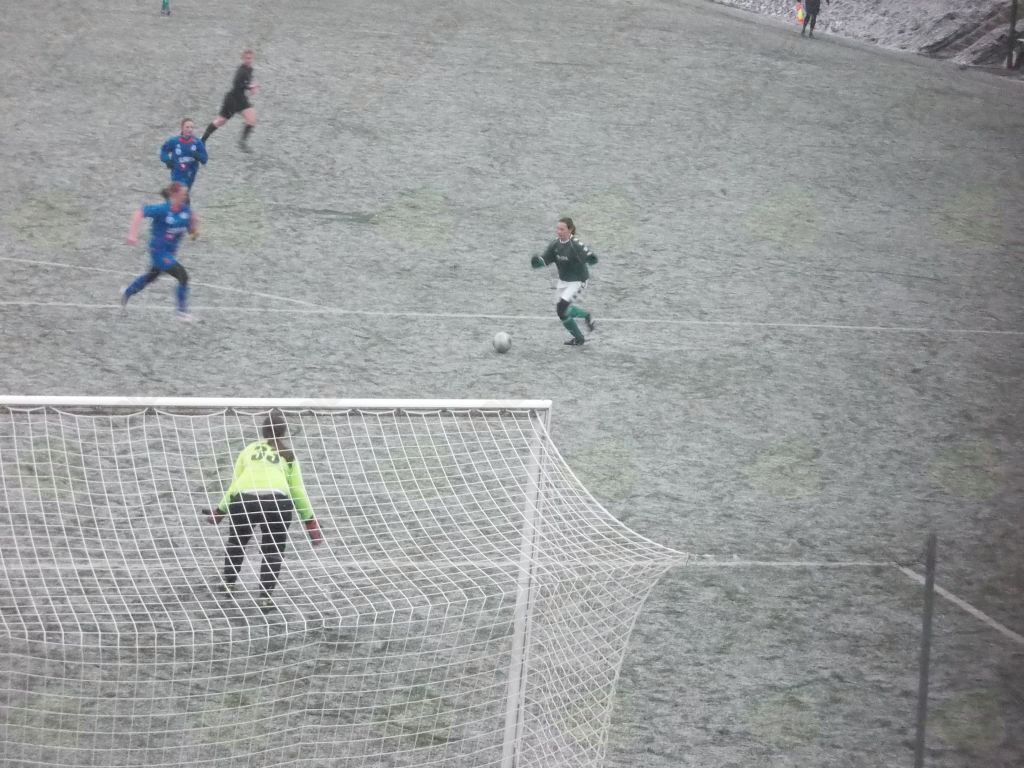 Po pol ure igre pa veselje na domači klopi, Nina Poberžnik je presenetila gostujočo vratarko Ziličevo, izkušeno vratarko je premagala z lobom z 20 metrov.