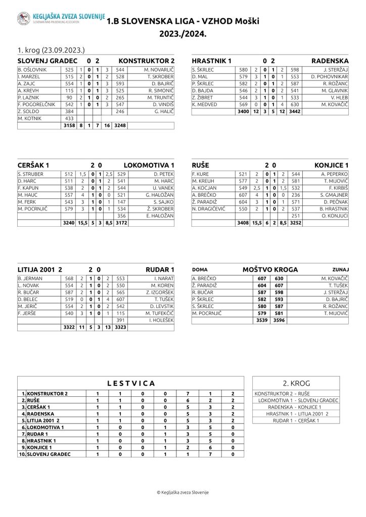 V 1B SLO ligi vzhod za moške, je ekipa KK Slovenj Gradec gostila ekipo KK Konstruktor 2 iz Maribora in izgubila dvoboj z rezultatom 1-7 za goste. Za domačine je največ, 554 kegljev podrl Anton Zajc. Ekipa KK Slovenj Grade je trenutno na 10, zadnjem mestu 1B SLO lige vzhod. https://portal.kegljaska-zveza.si/pregled/liga/65