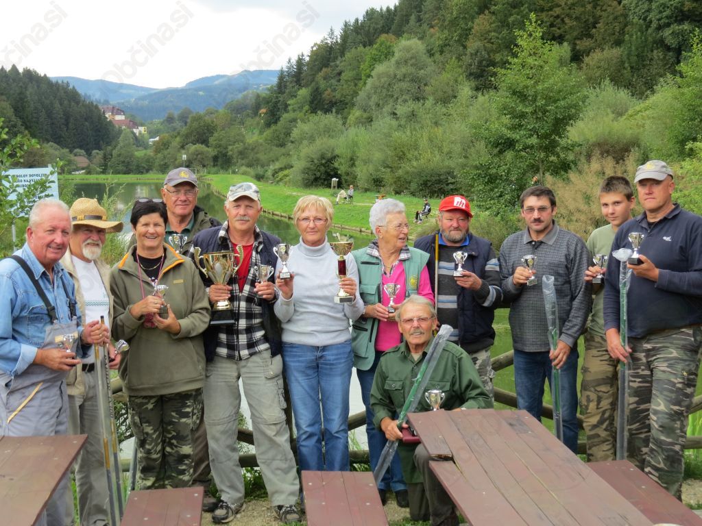 V moški konkurenci so bili tekmovalci razvrščeni v tri sektorje. Pokale, ki sta jih podeljevala Tadej Paradiž, predsednik Koroške ribiške družine - Aktiva Slovenj Gradec in Vili Kašnik, gospodar Aktiva in gospodar salmonidnih vod pri Koroški ribiški družini, so prejeli prvi trije tekmovalci iz posameznega sektorja. Poleg pokalov so še prejeli lepe praktične nagrade, katere jim je izročil Jože Skaza. Prav tako so prejele pokale in nagrade prve tri tekmovalke v ženski konkurenci. Najboljši tekmovalec izmed vseh treh sektorjev v moški konkurenci in najboljša tekmovalka v ženski konkurenci pa sta prejel aše prehodni pokal MO Slovenj Gradec, katera jima je podelil Hinko Kašnik, svetnik Občinskega sveta MO Slovenj Gradec. Iz rezultatov pa je razvidno, da sta bila to Stanislava Tamše in Bojan Zdovc.