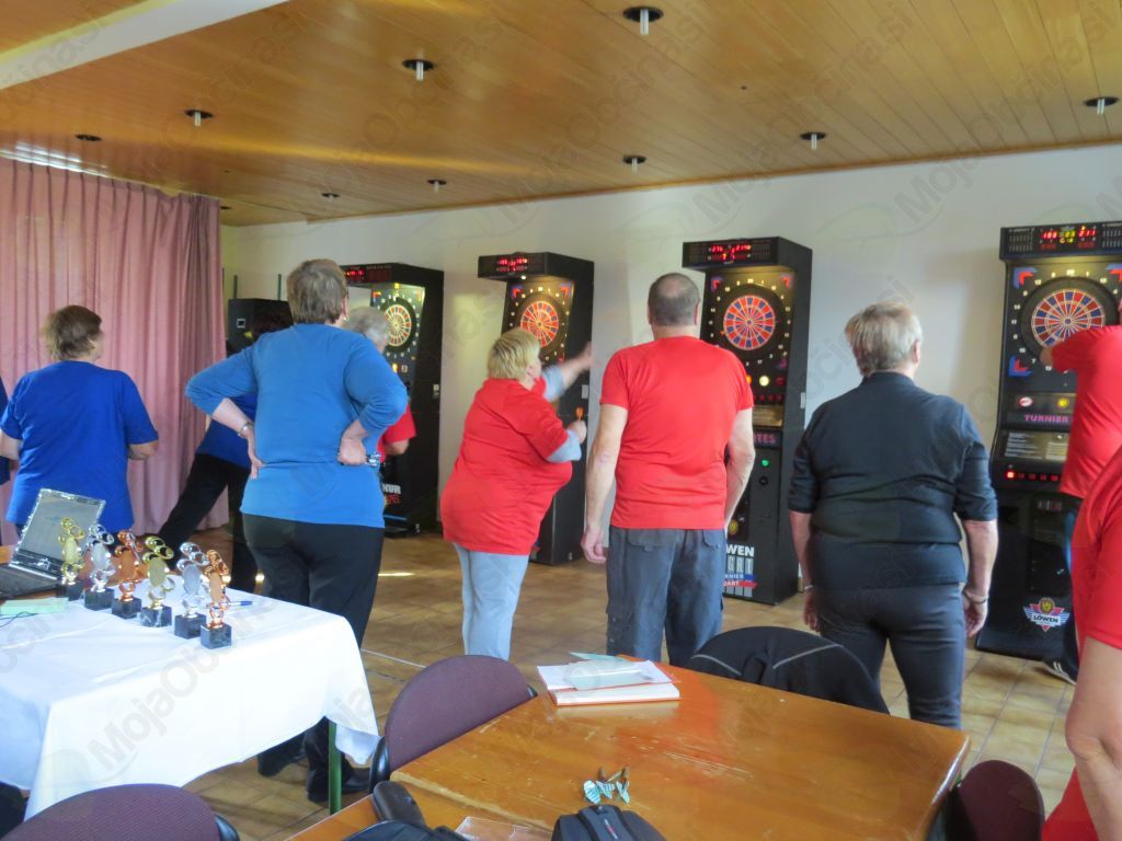 Na tekmovanje se je skupaj prijavilo 52 tekmovalcev - v moški konkurenci 24 tekmovalcev, v ženski konkurenci pa 28 tekmovalk. Tekmovalci so bili iz vseh petih koroških društev invalidov, članic ZDIS. Iz DI Slovenj Gradec se je tekmovanja udeležilo 7 tekmovalk in 5 tekmovalcev. Po opravljenem žrebu se je tekmovanje pričelo ob 16.00 uri, vsak tekmovalec je metal 2 krat po 7 metov s tremi puščicami.